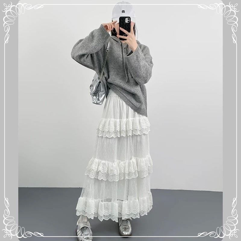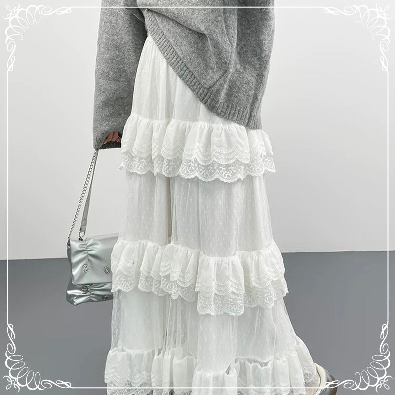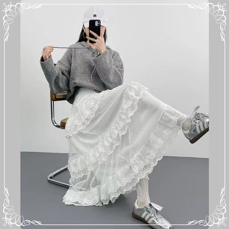 蕾丝拼接 蛋糕裙 半身裙