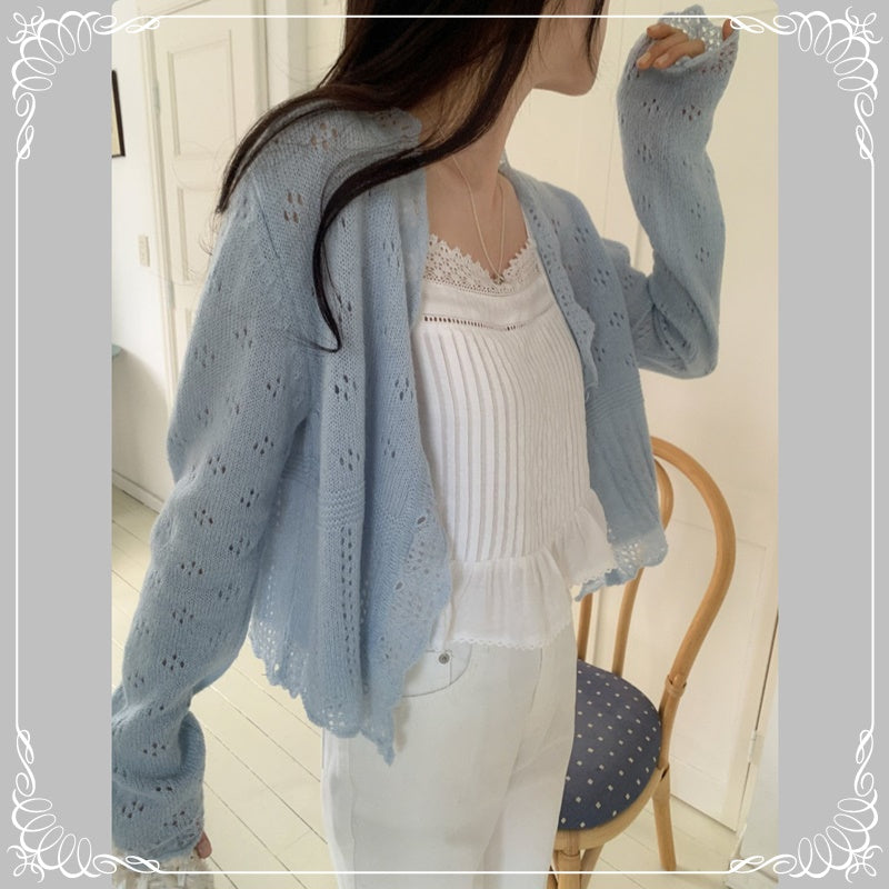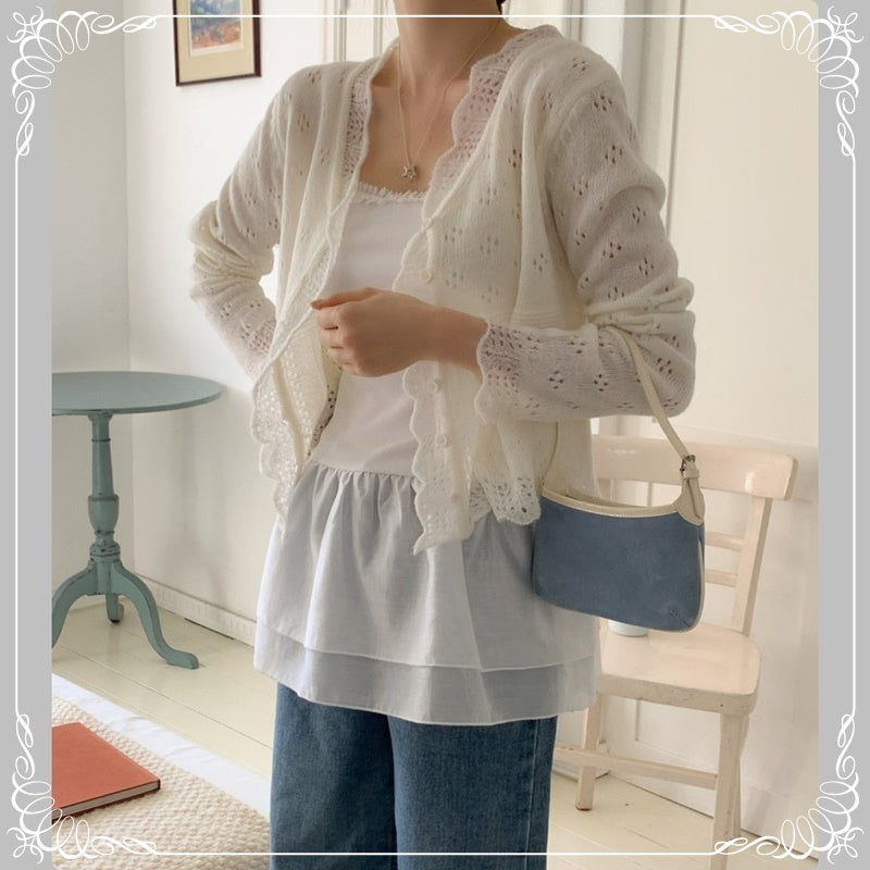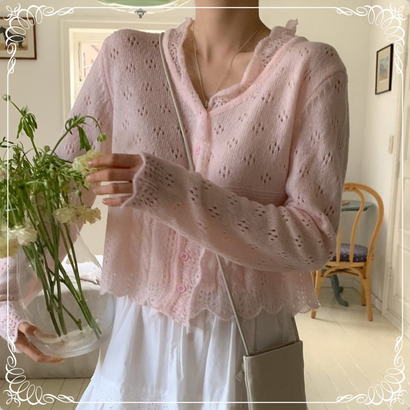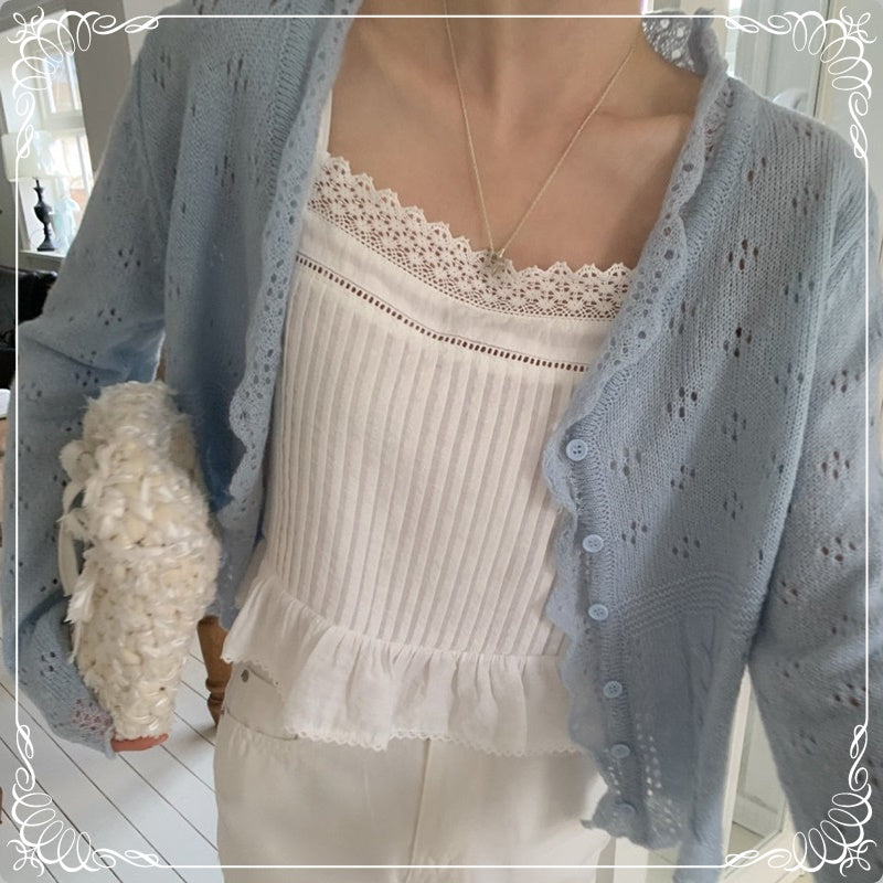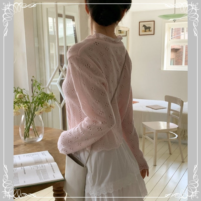 镂空 花瓣领 针织上衣