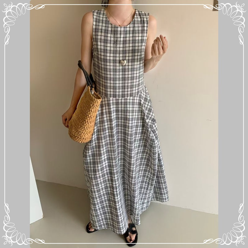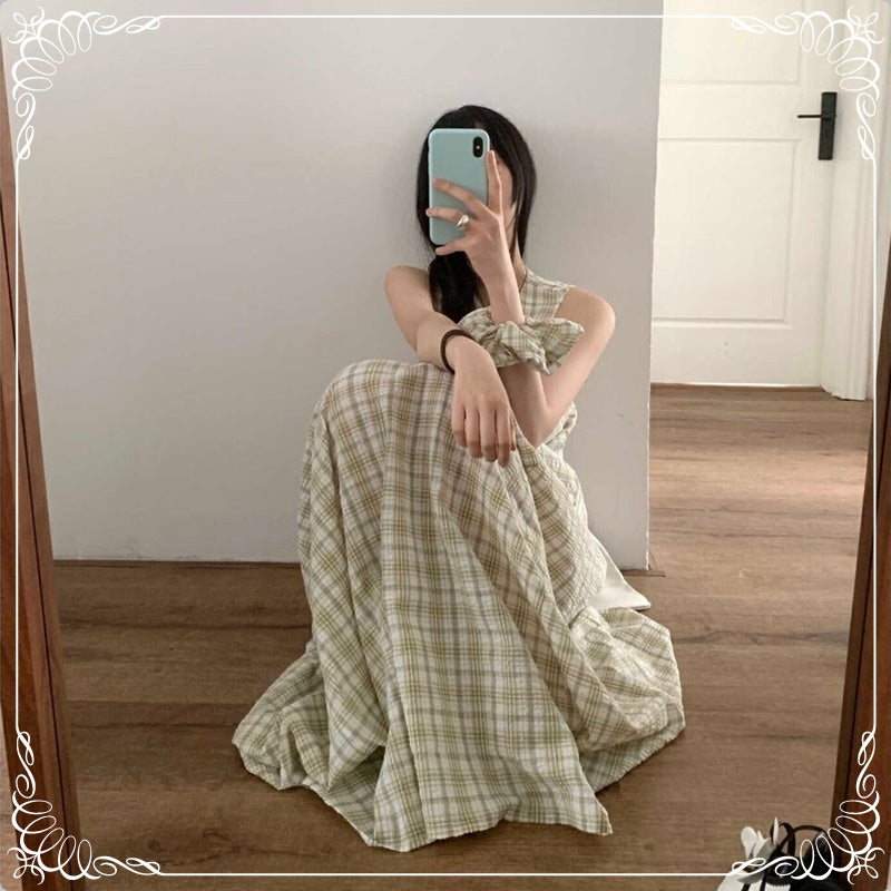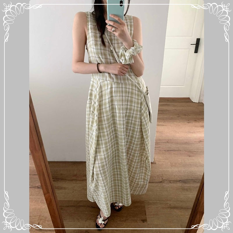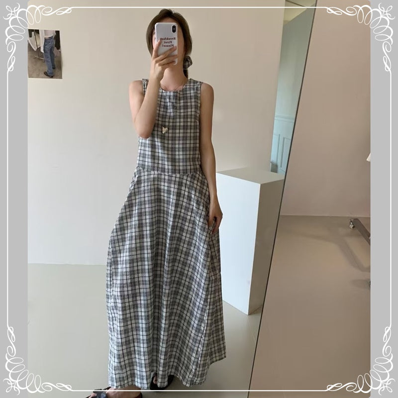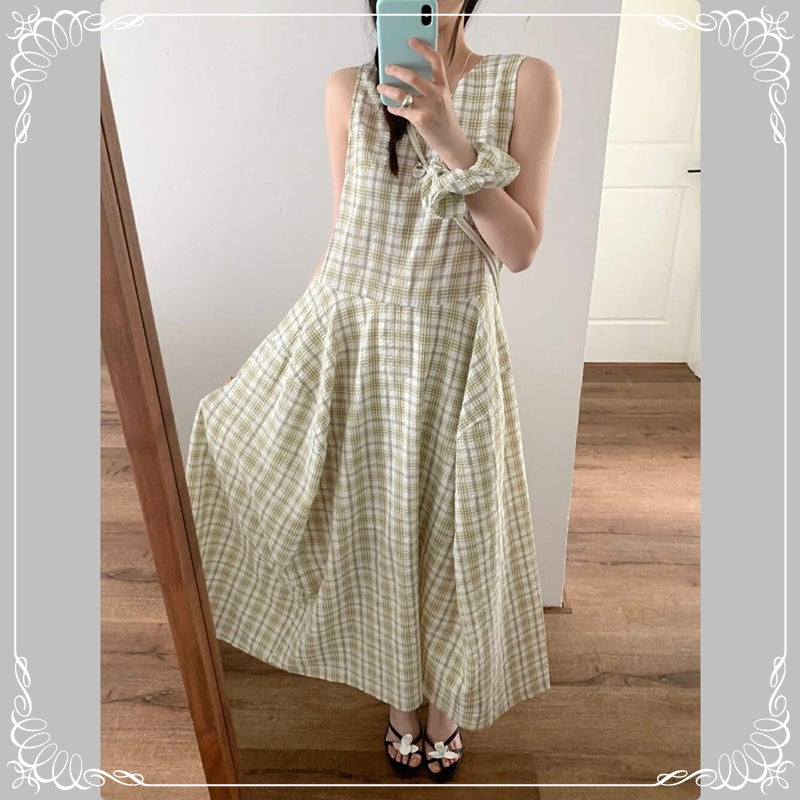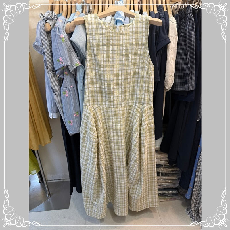 格纹 背心 连衣裙 配发圈