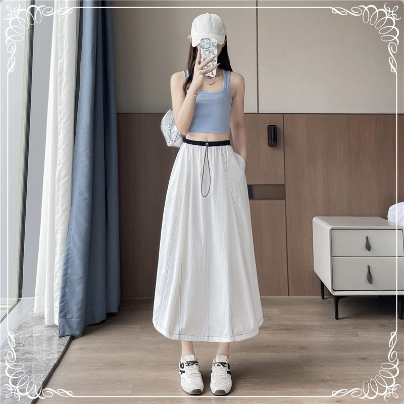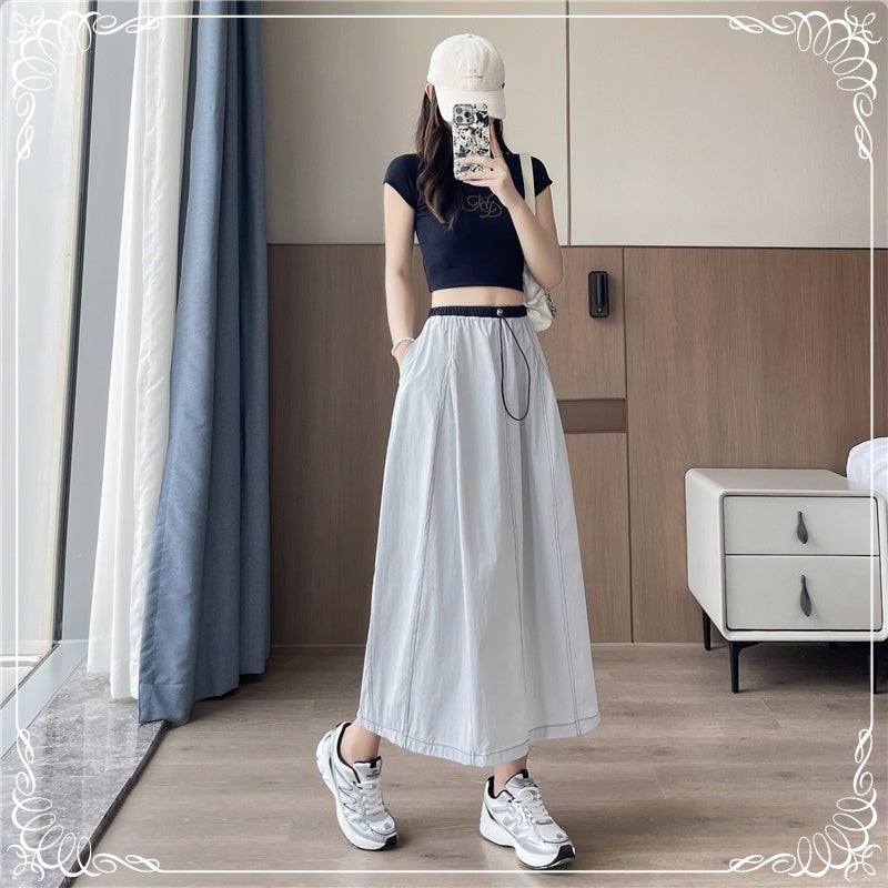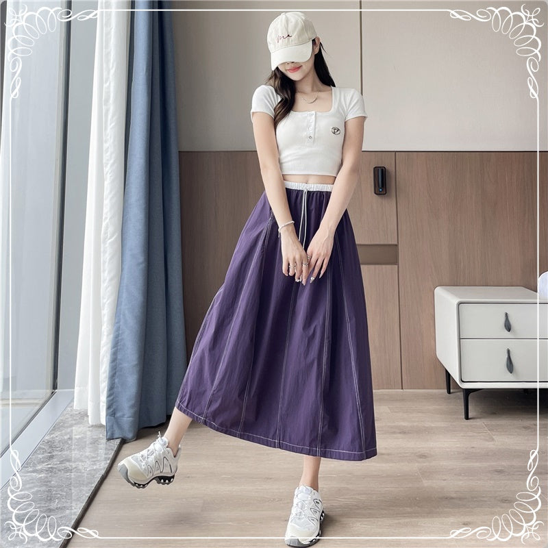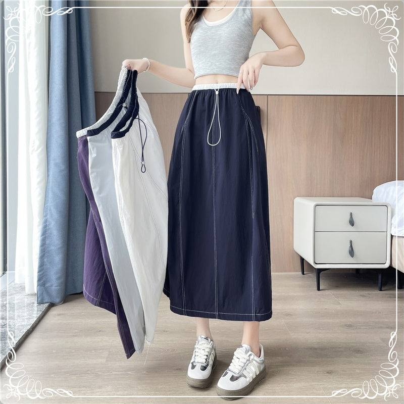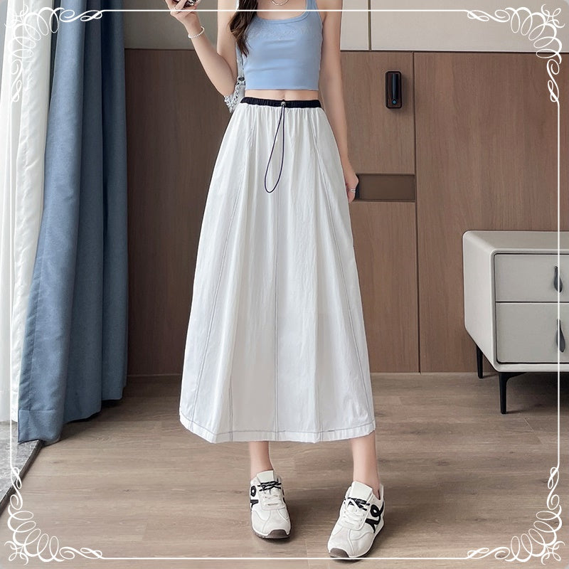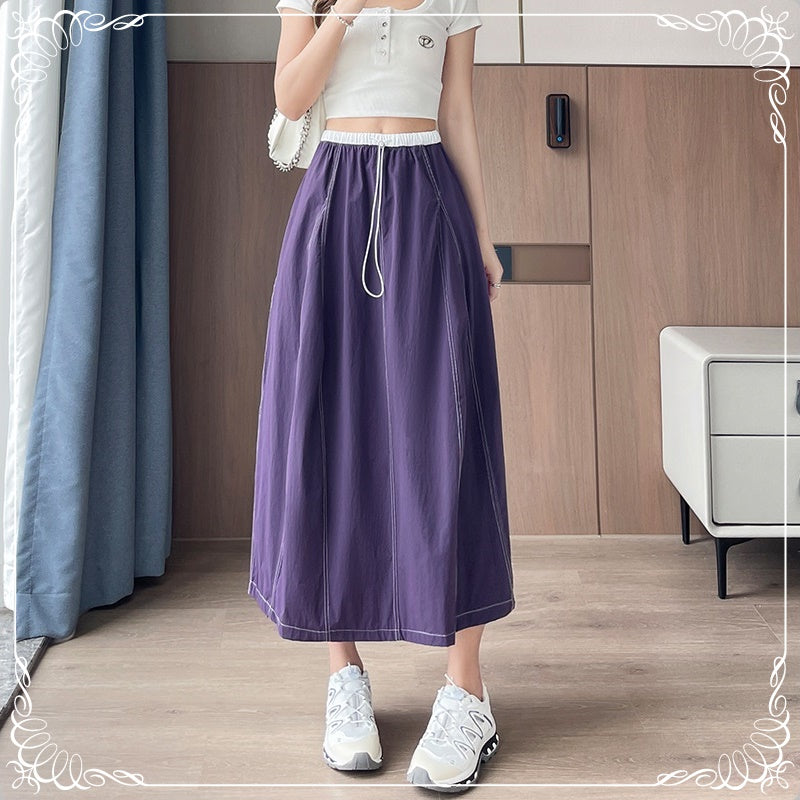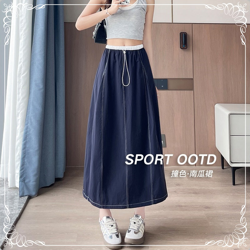 高腰 拼色 明细 半身裙