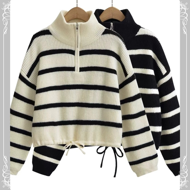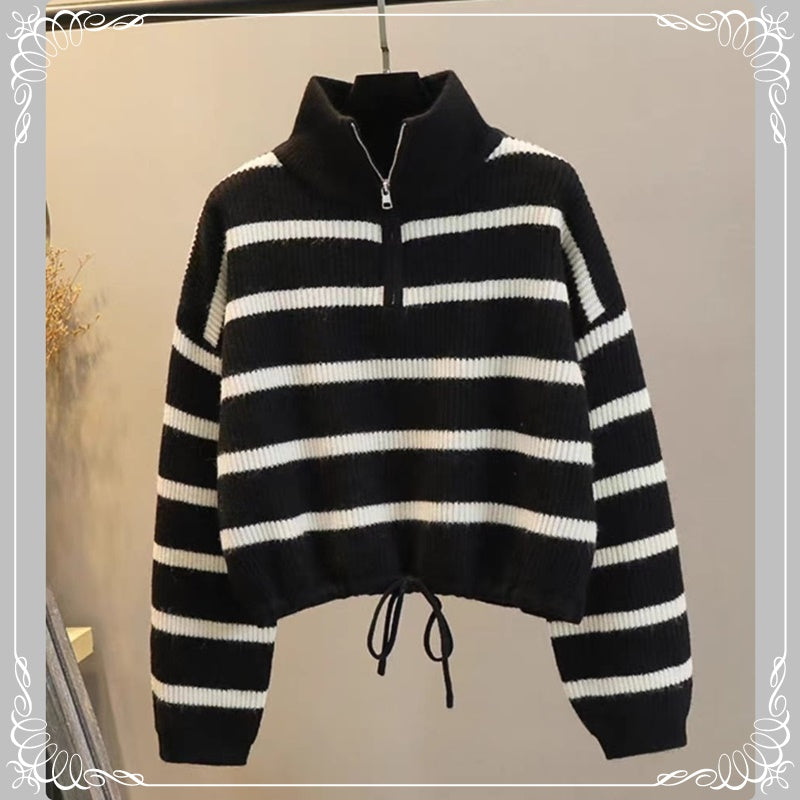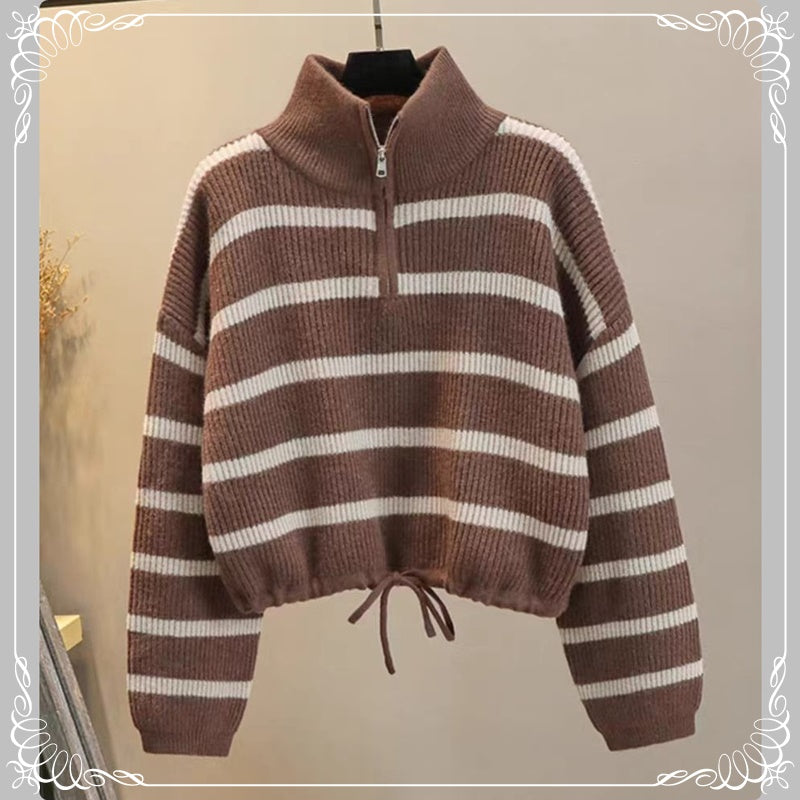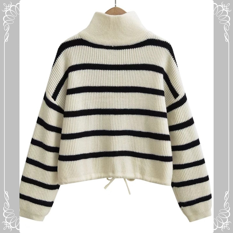 半拉 条纹 抽绳 套头