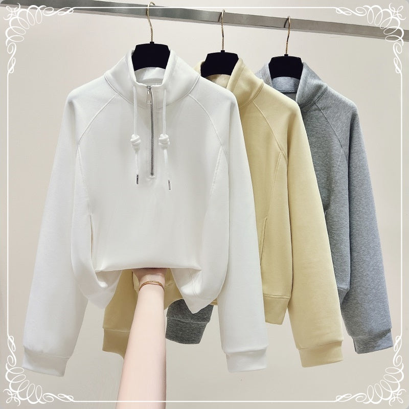 立领 半拉 宽松 套头卫衣
