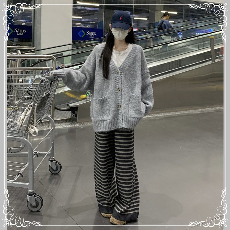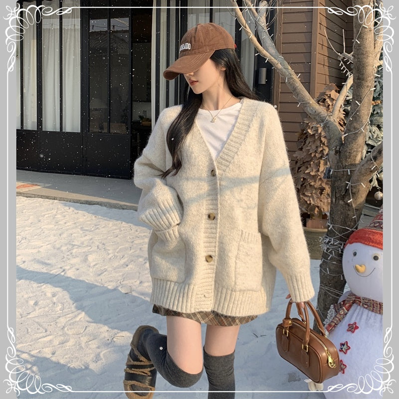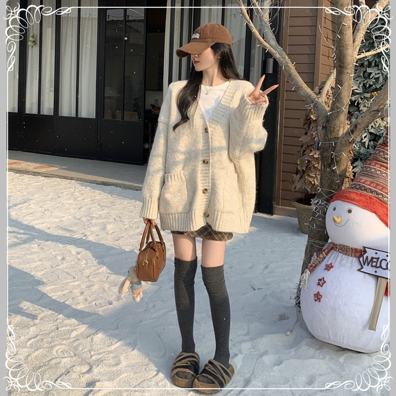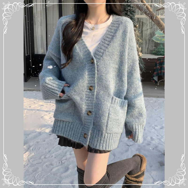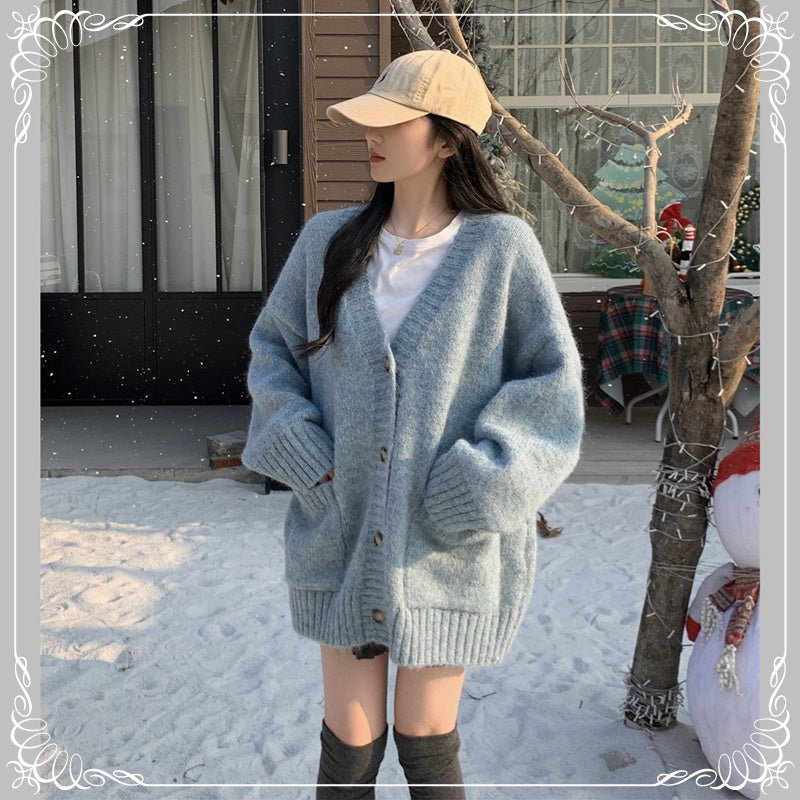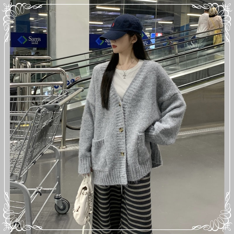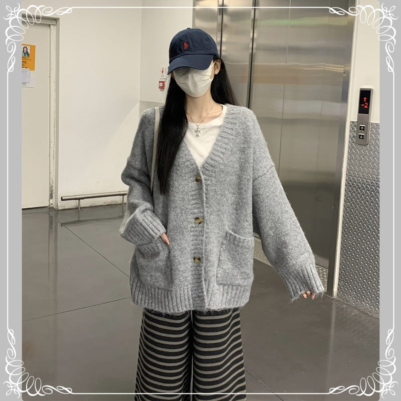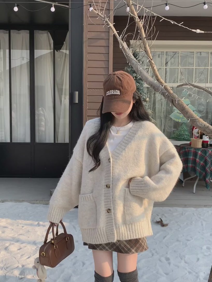 慵懒风 V领 浣熊绒 开衫