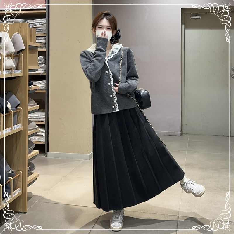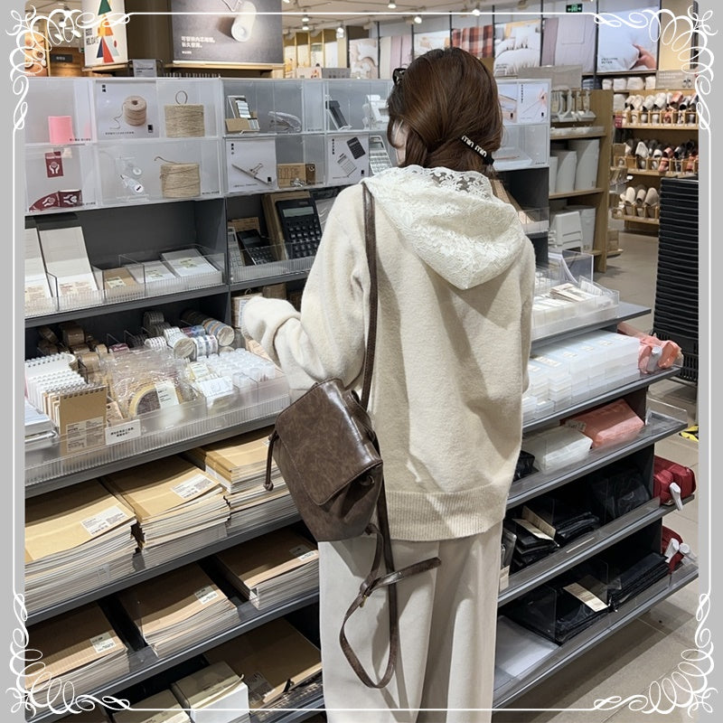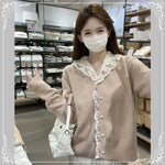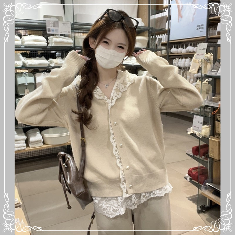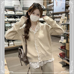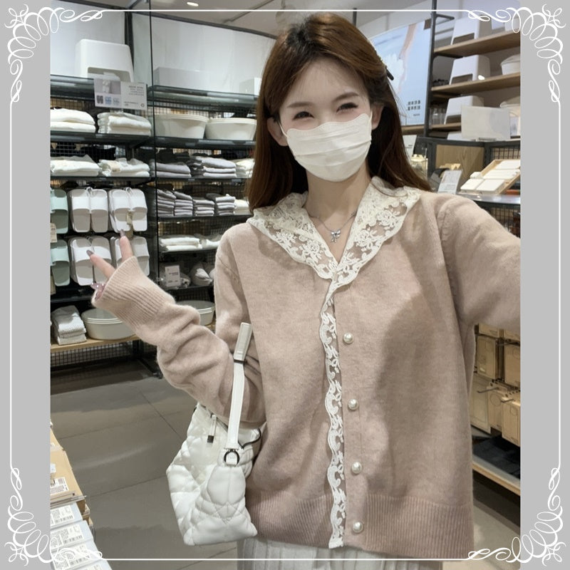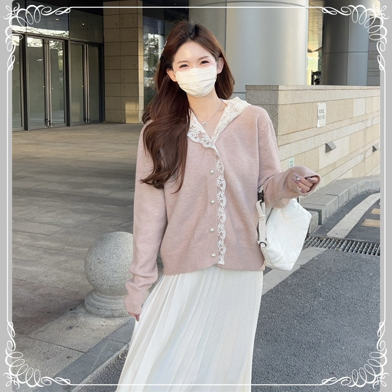 蕾丝 连帽 珍珠扣 开衫