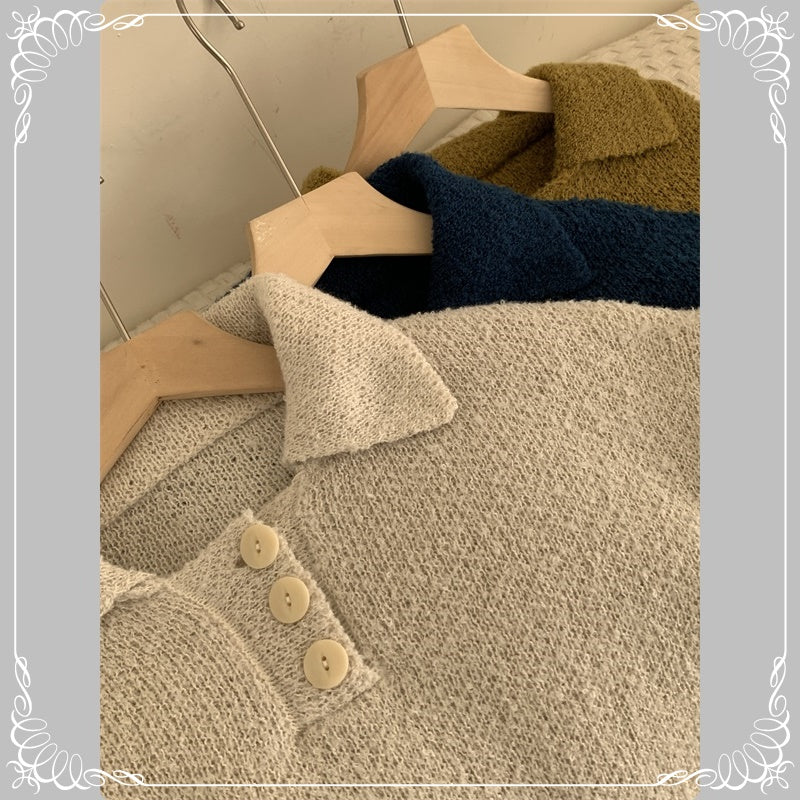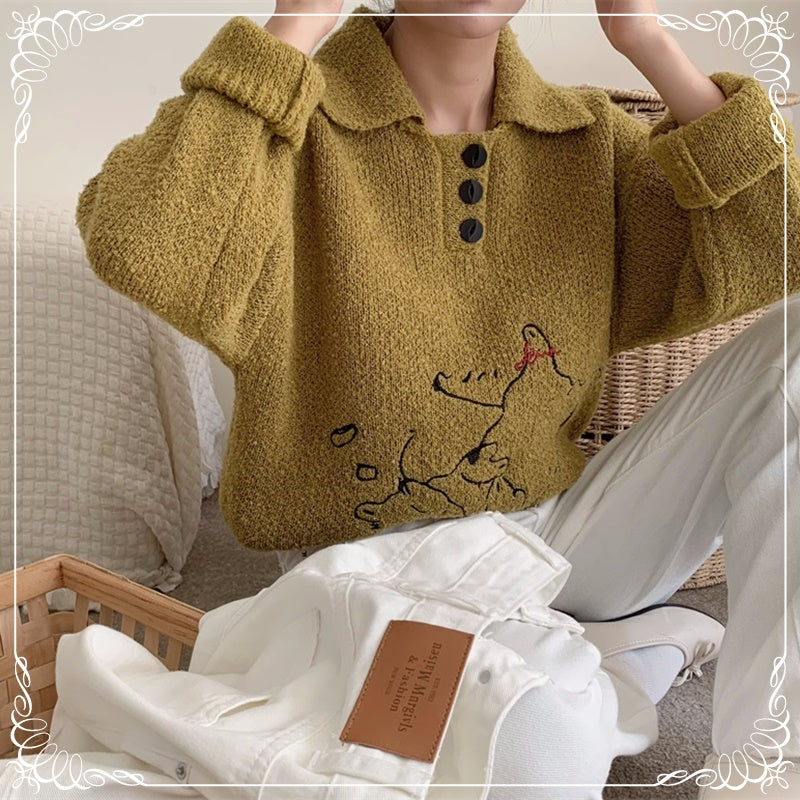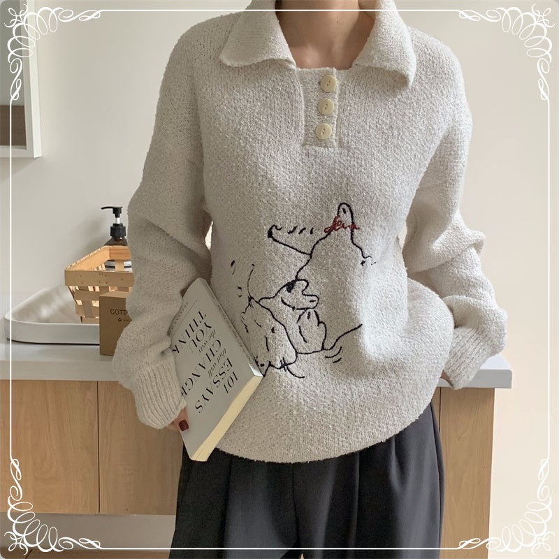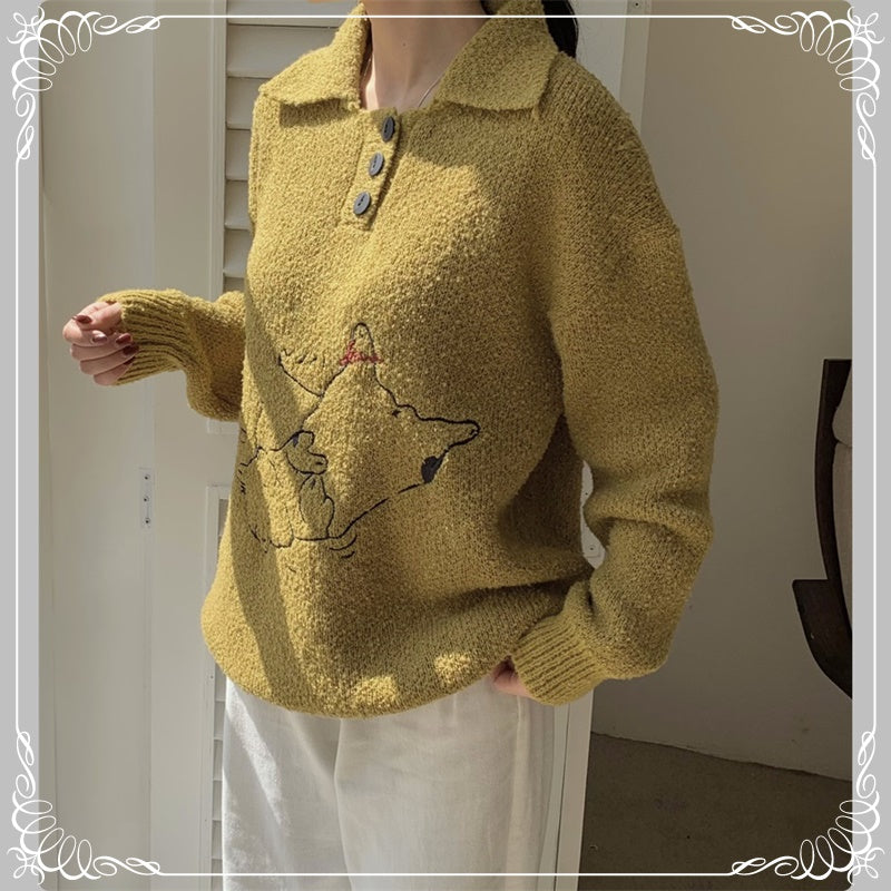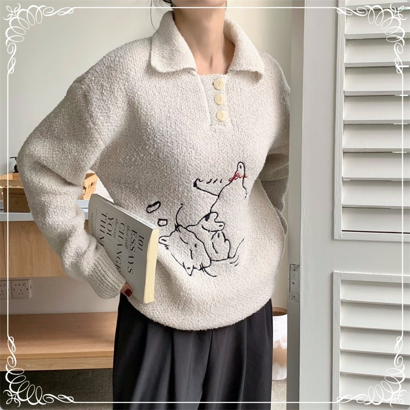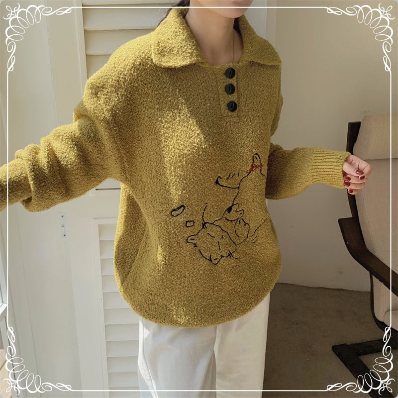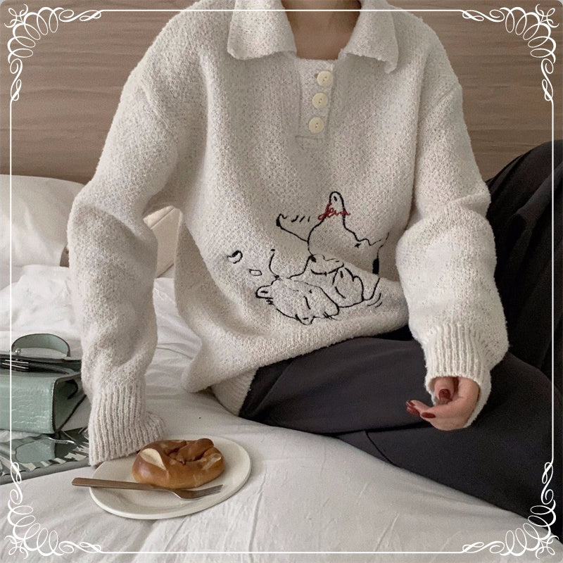 小猫刺绣 翻领 套头