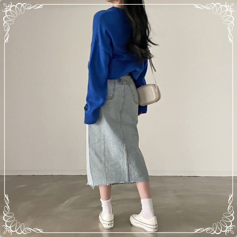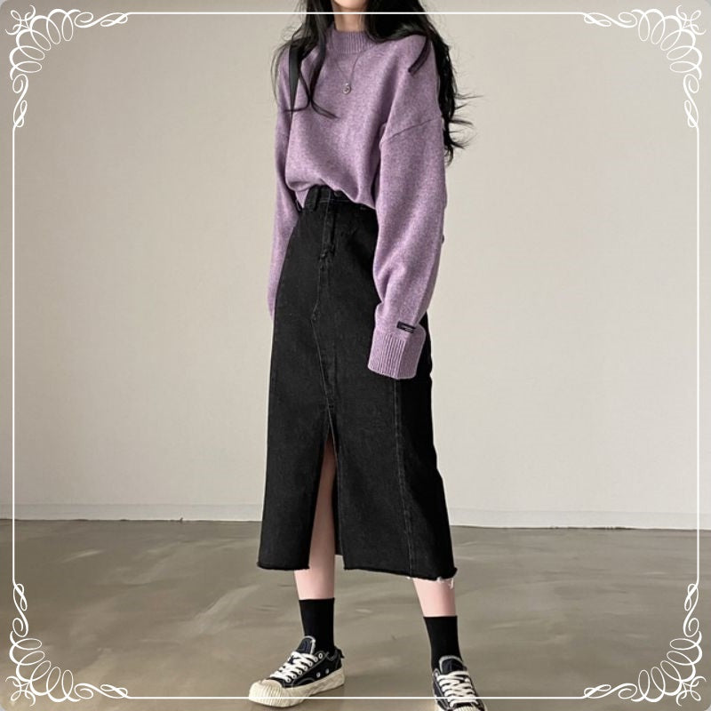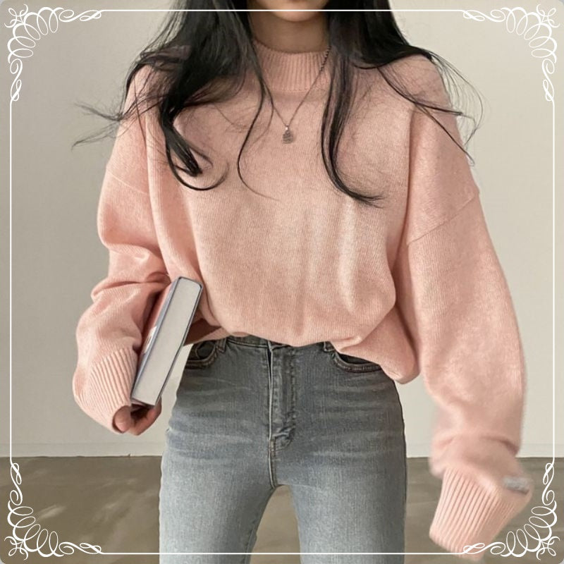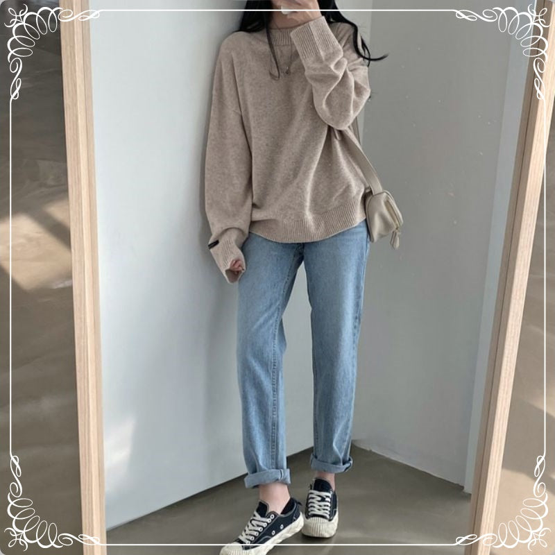 慵懒风 宽松 圆领 中长款 套头