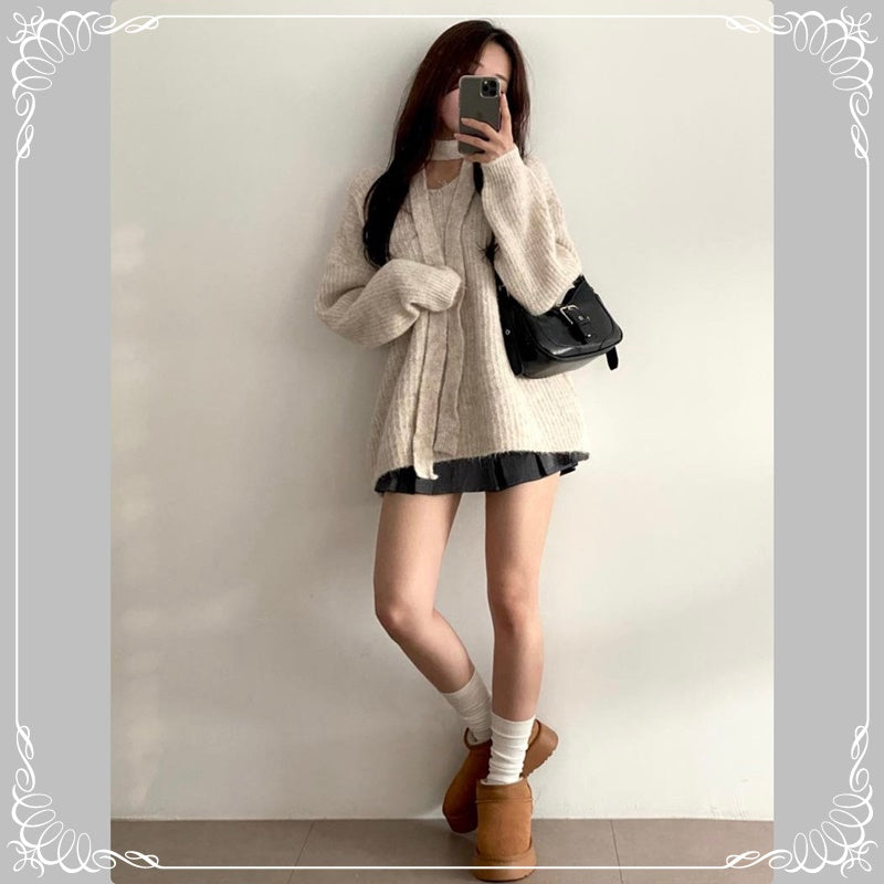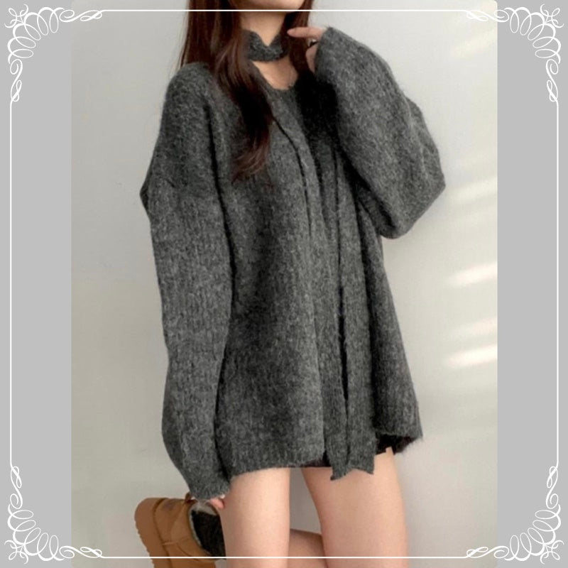 挂脖飘带 V领 中长款 套头