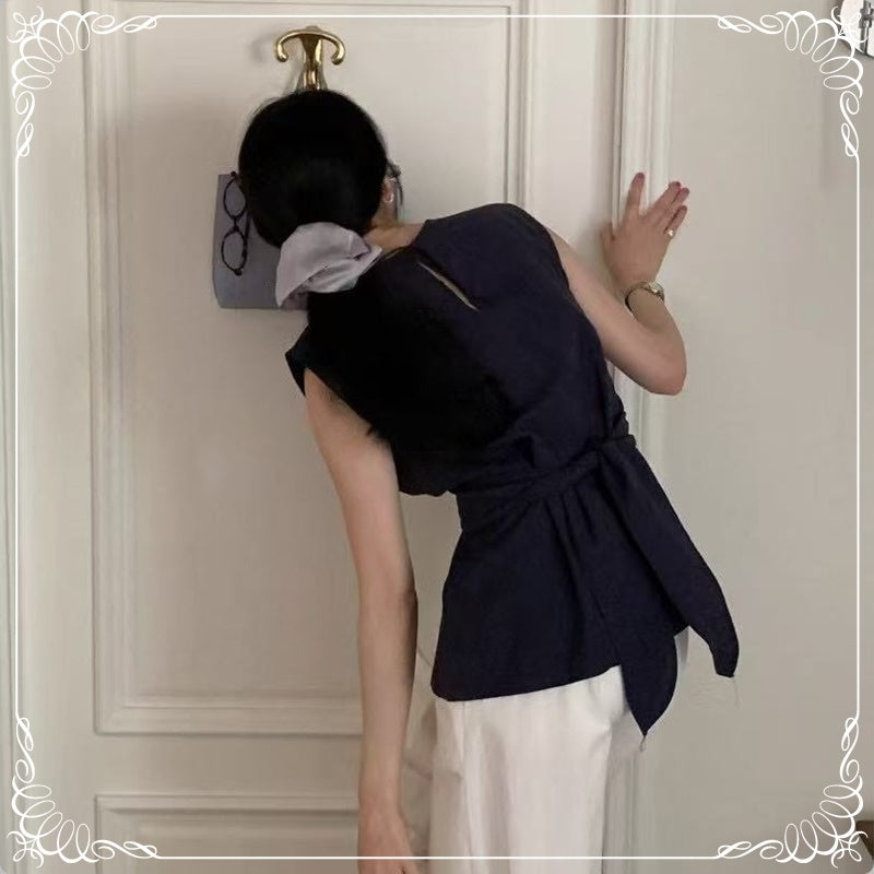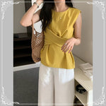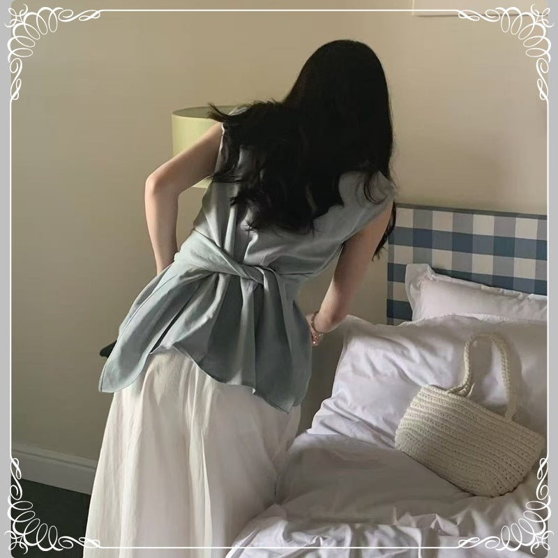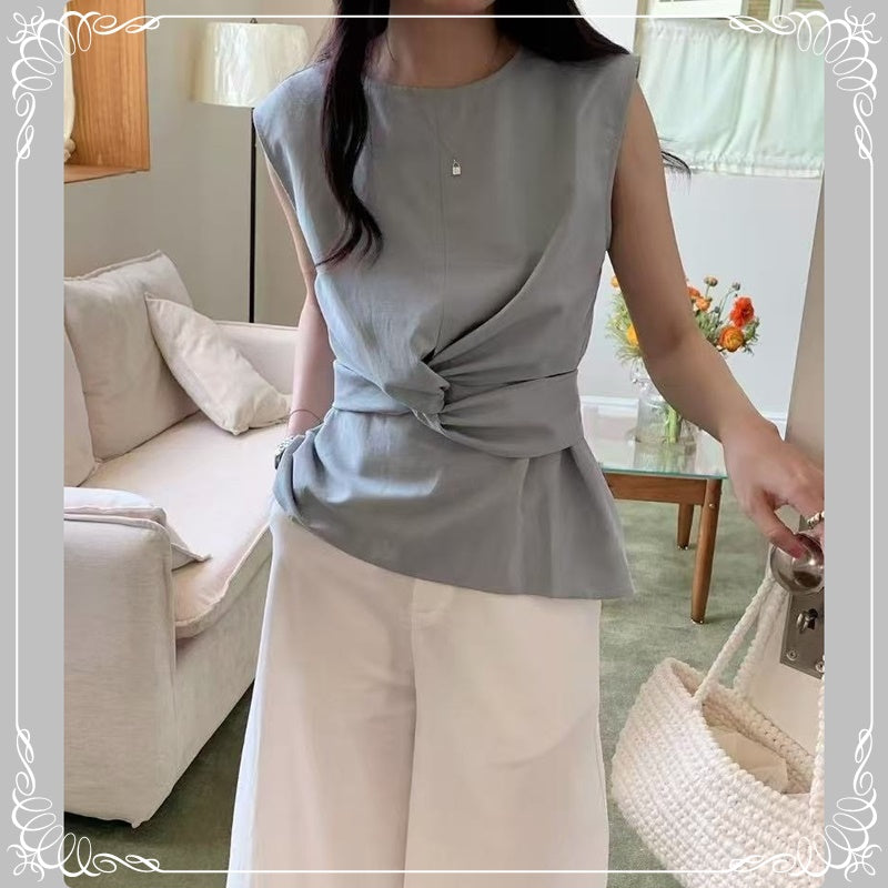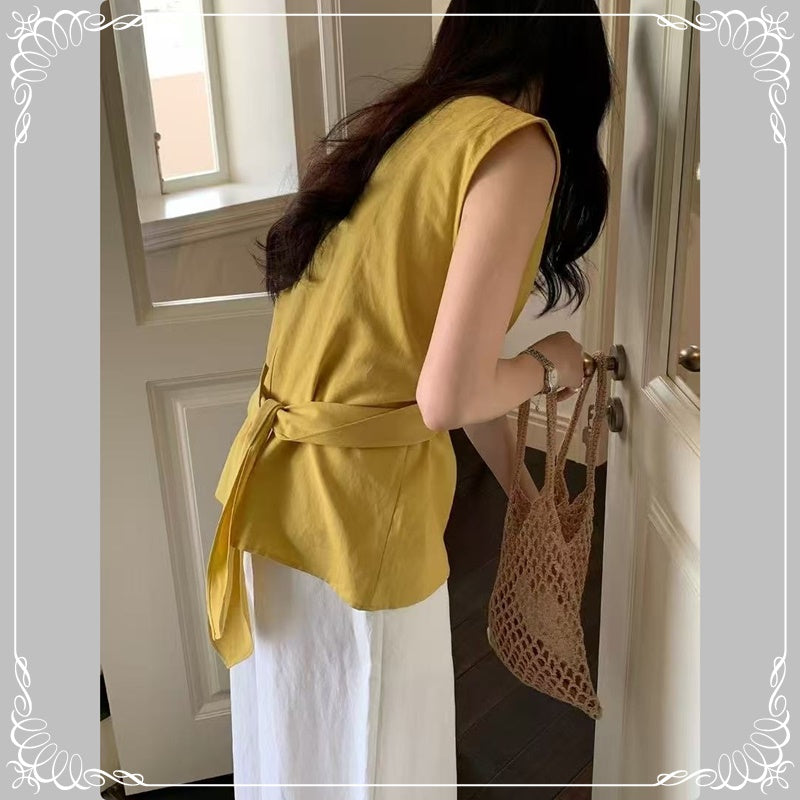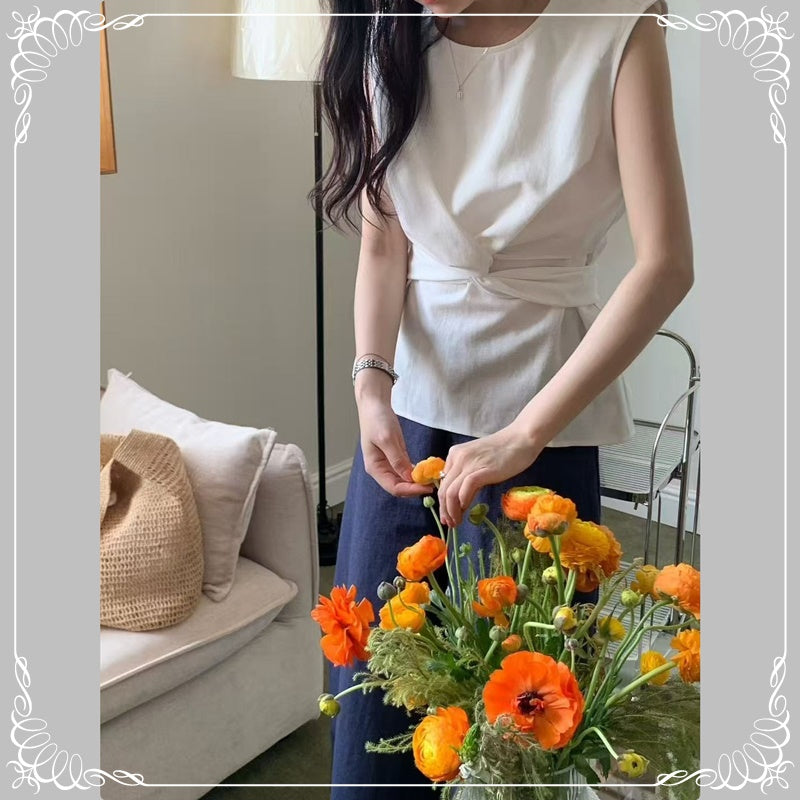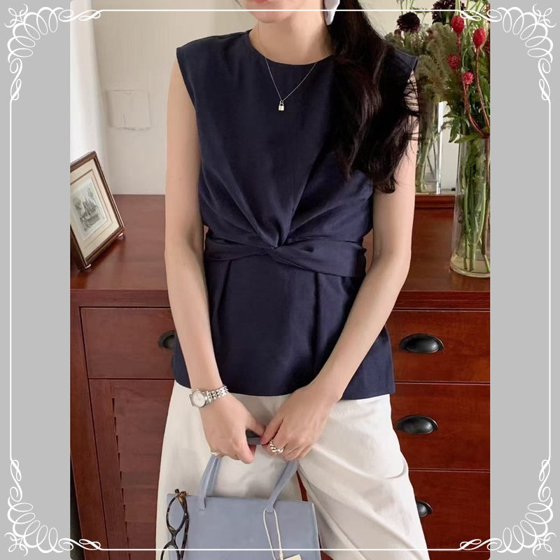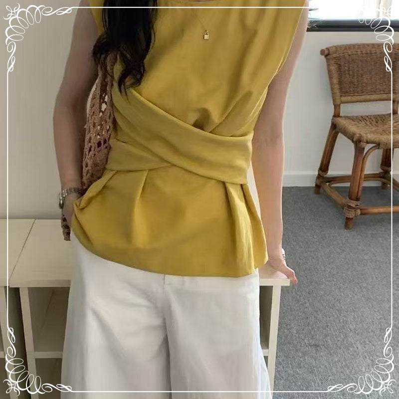交叉 波点 无袖上衣