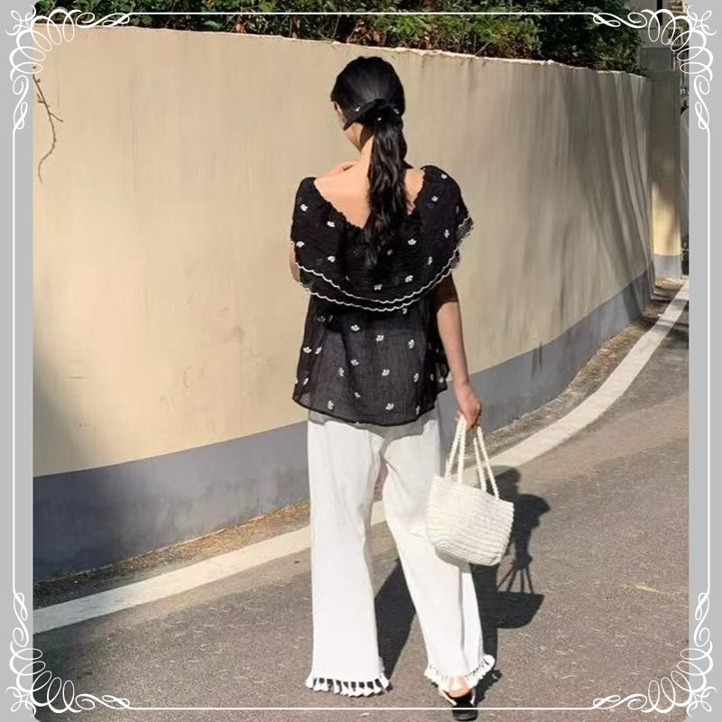 一字领 碎花