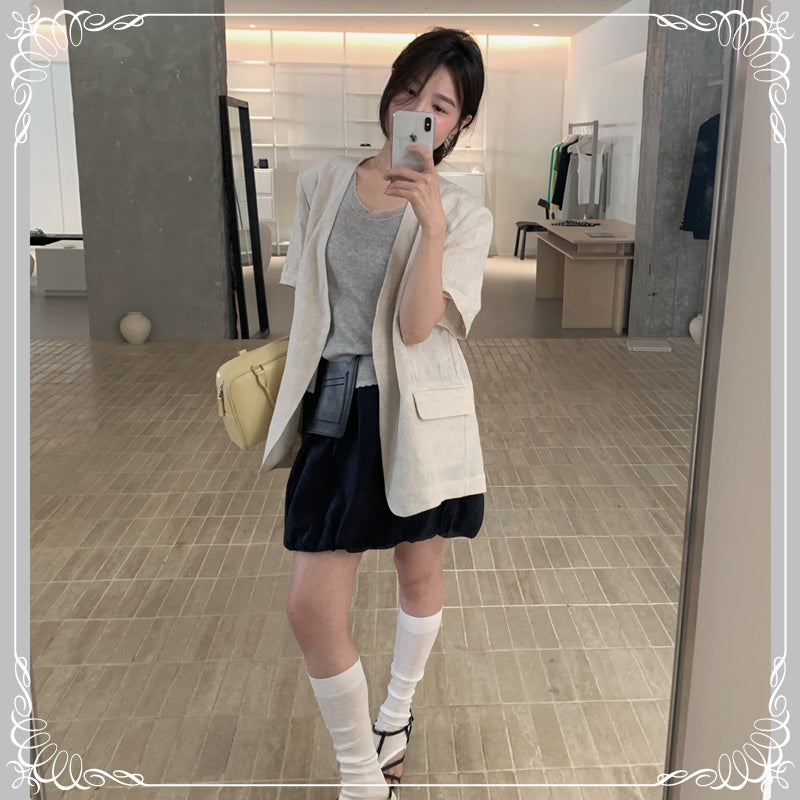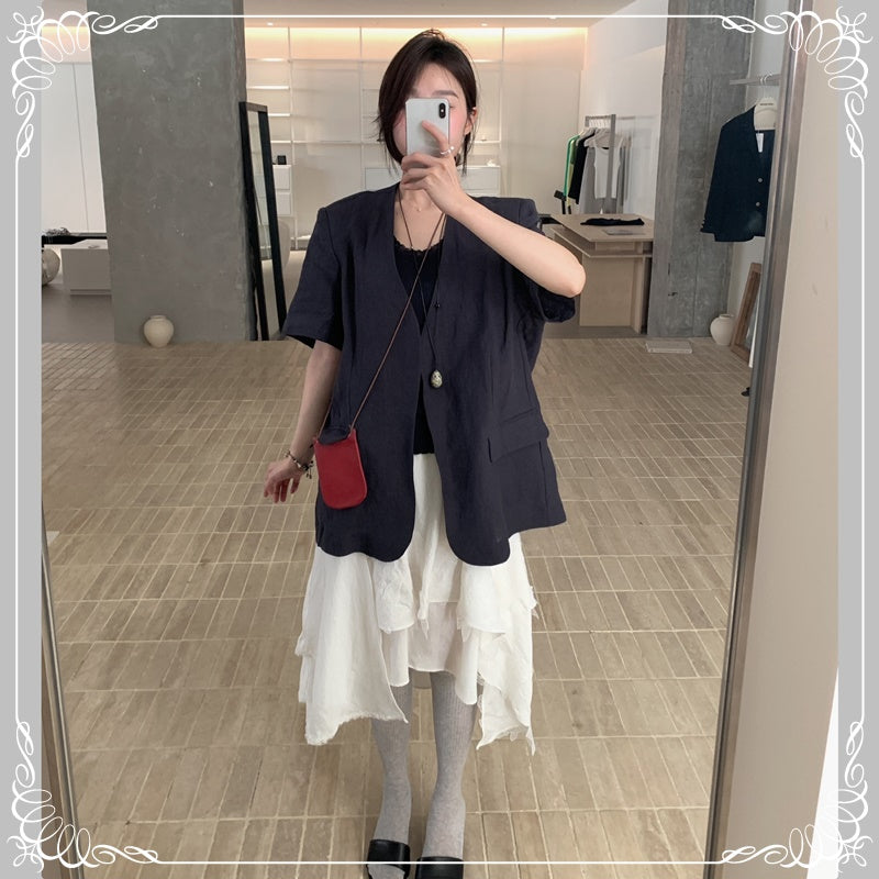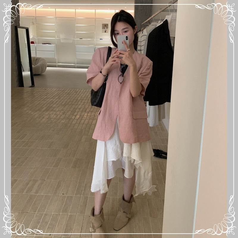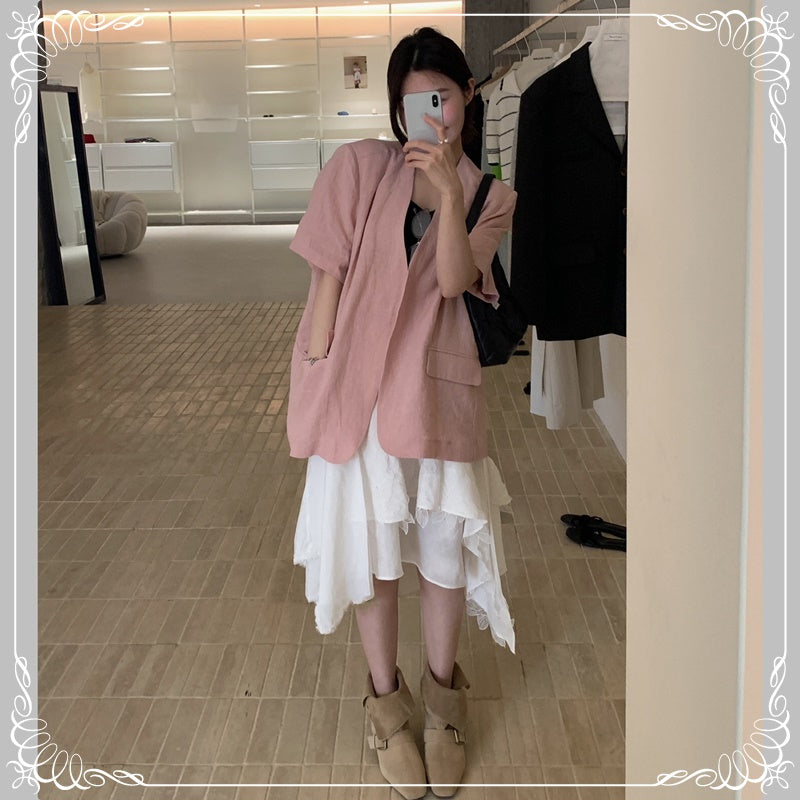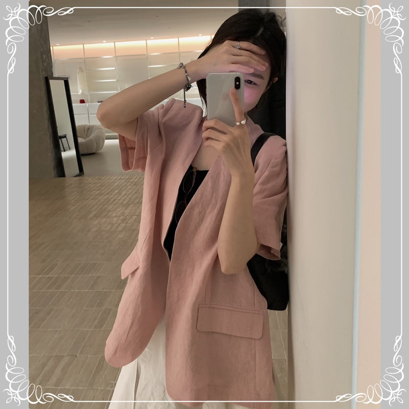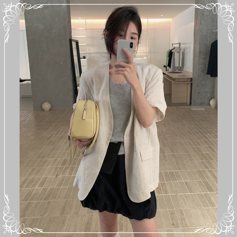 麻料 短袖 薄西装