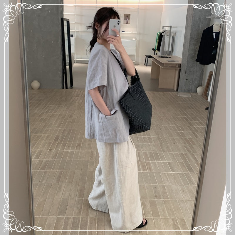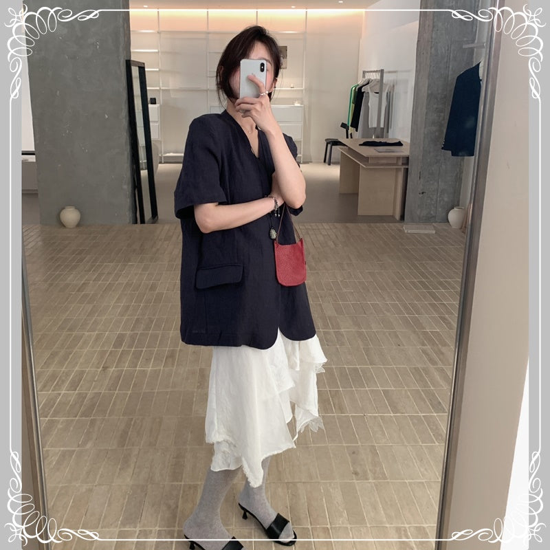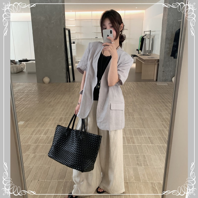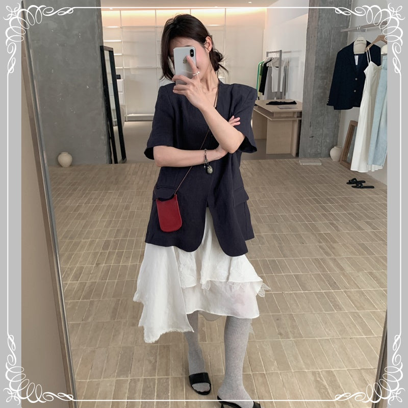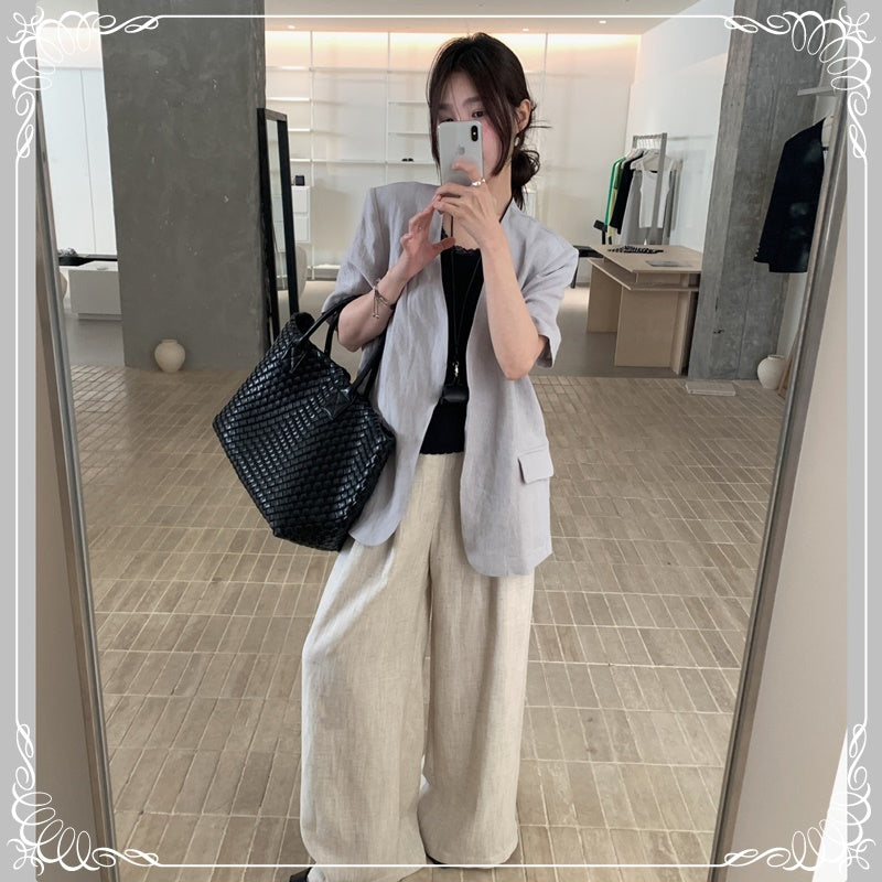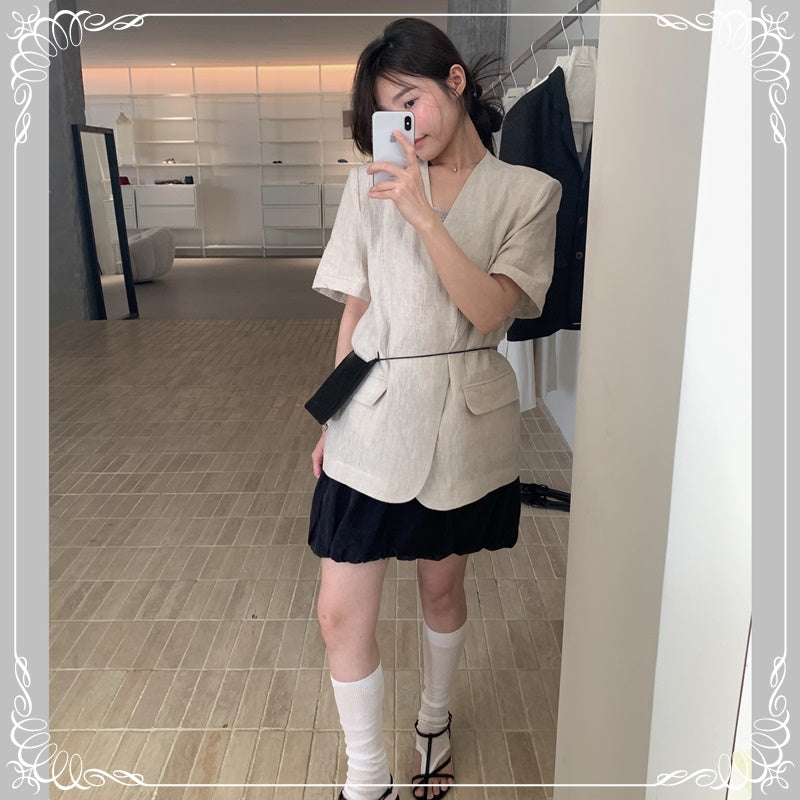 麻料 短袖 薄西装