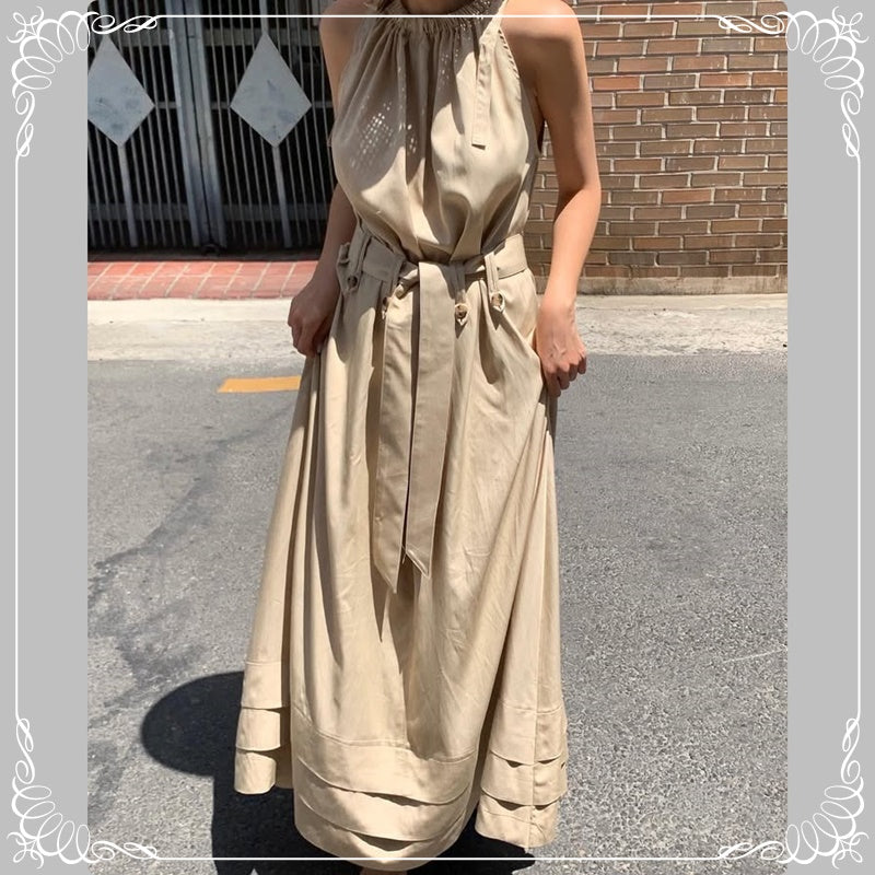 系带 收腰 背心连衣裙