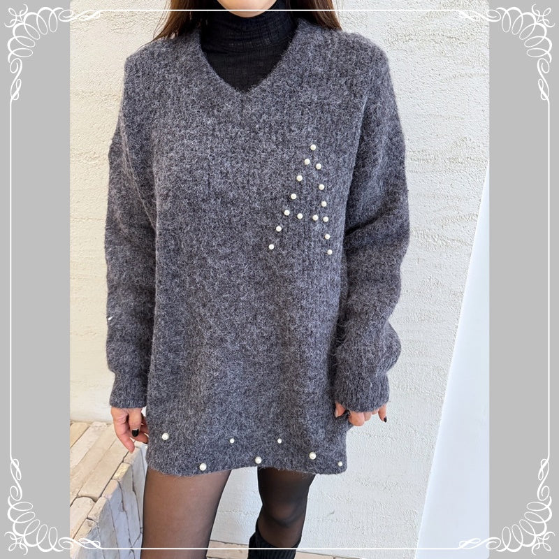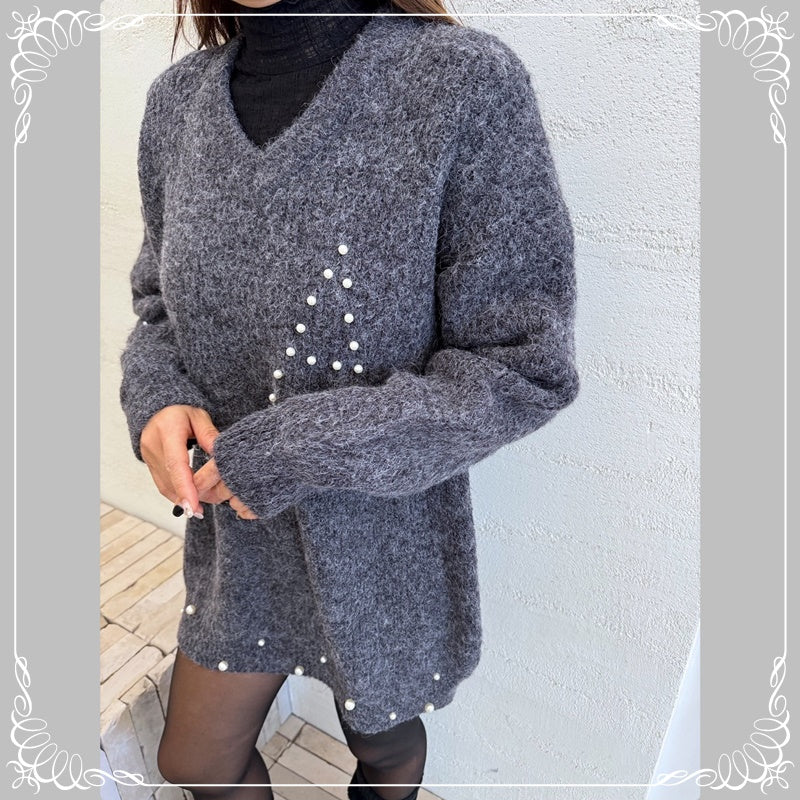 钉珠 V领 中长款