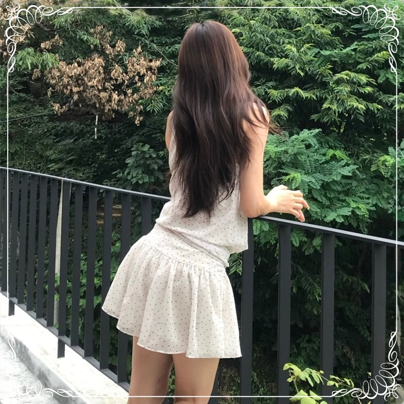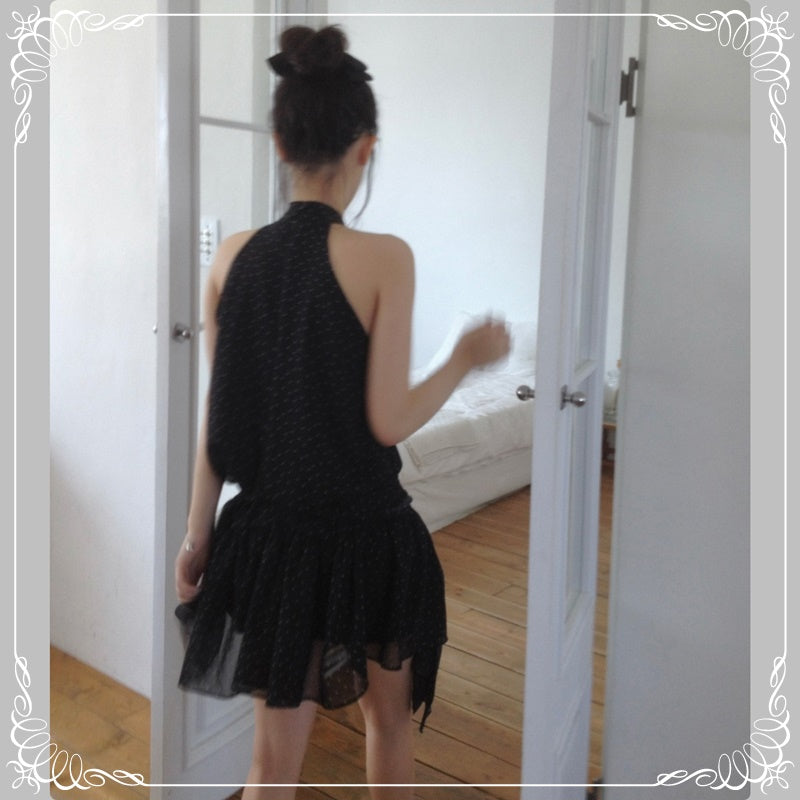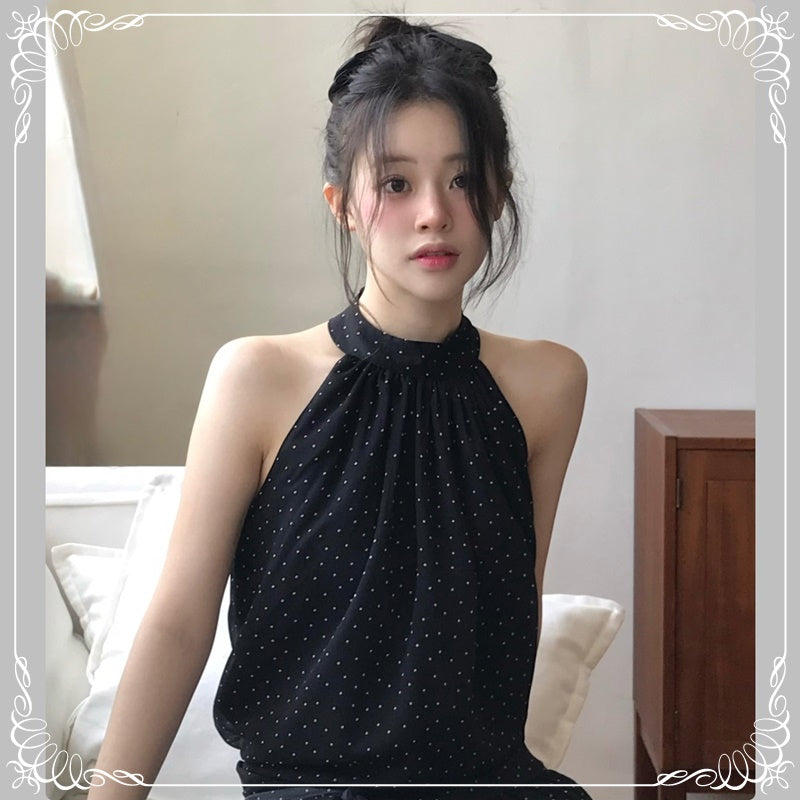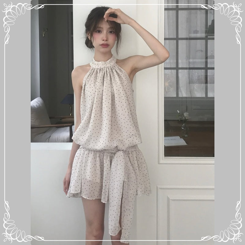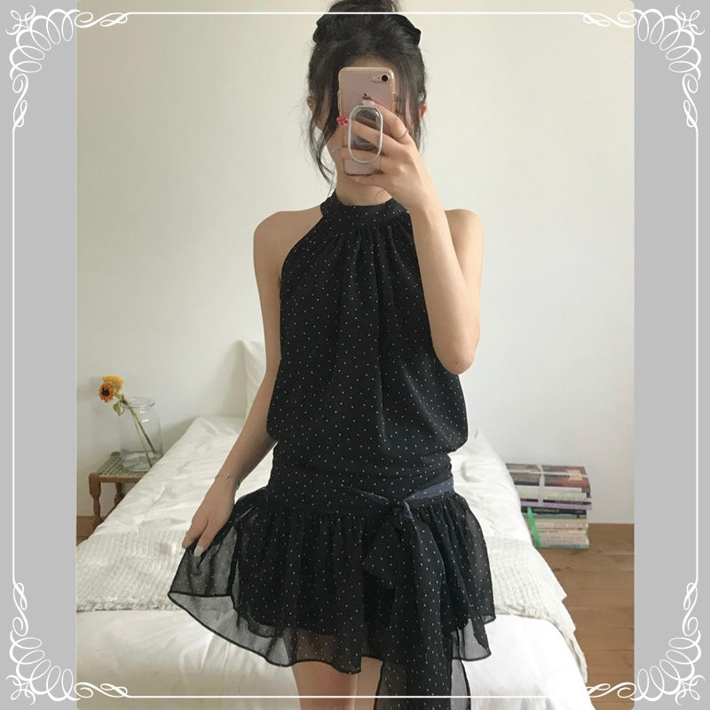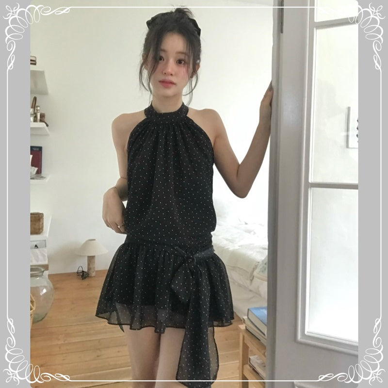 挂脖 绑带 无袖 波点