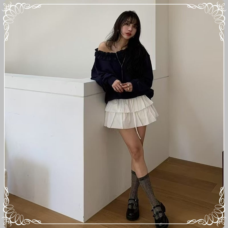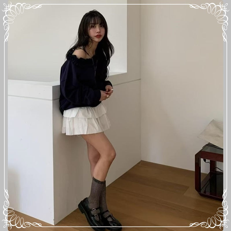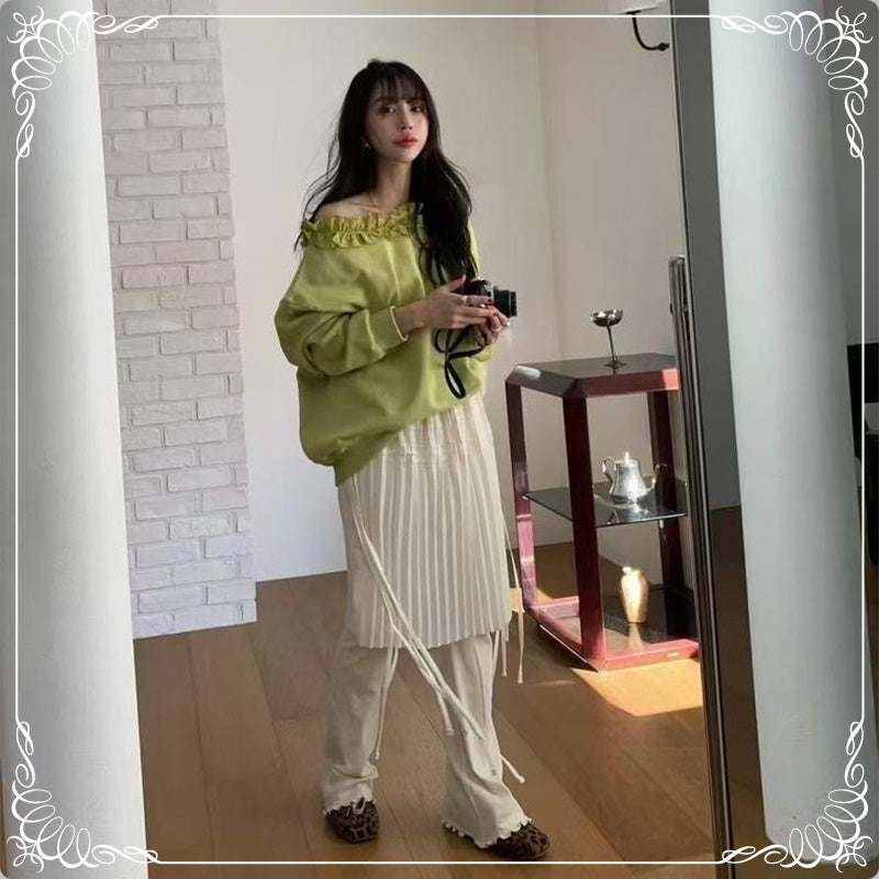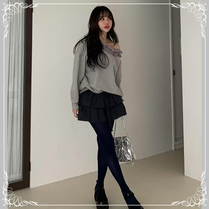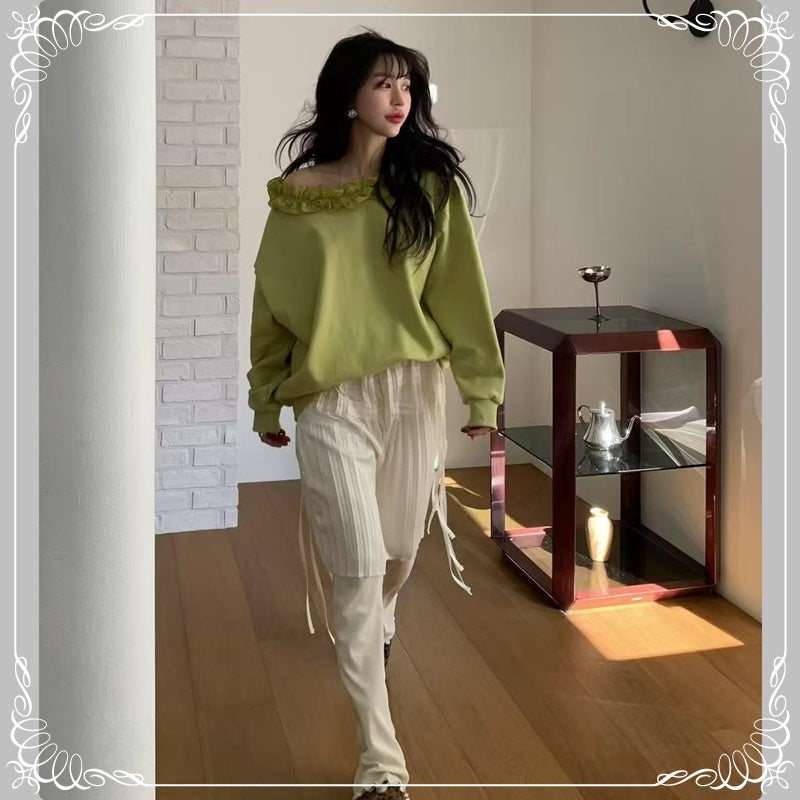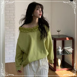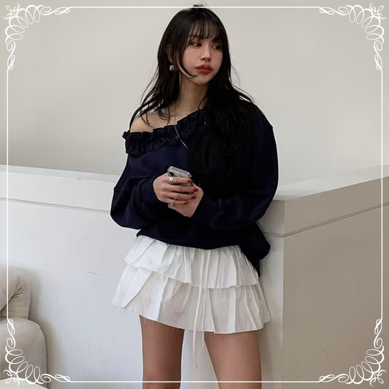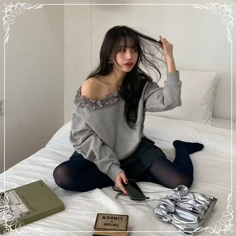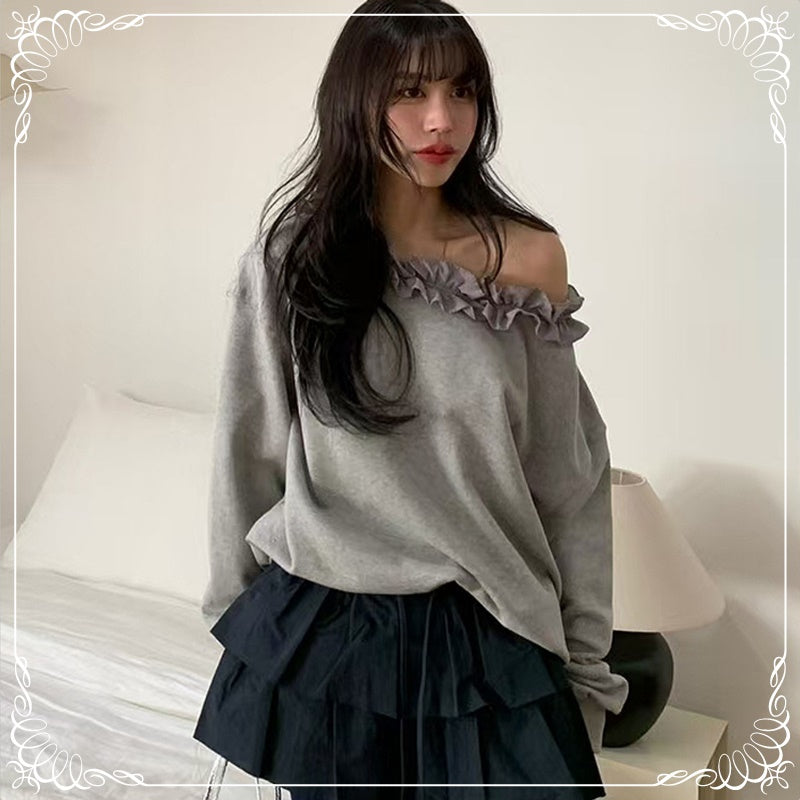 花边领 慵懒风 斜肩卫衣
