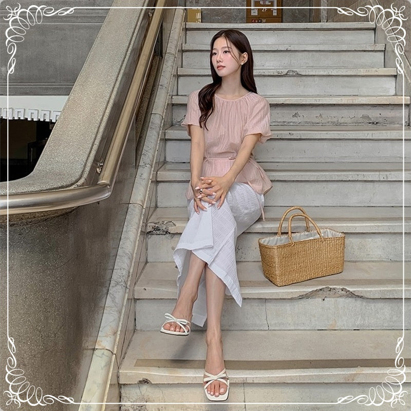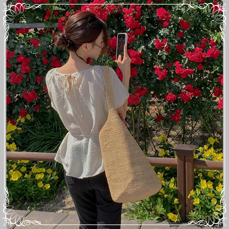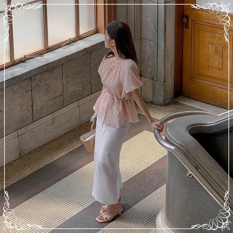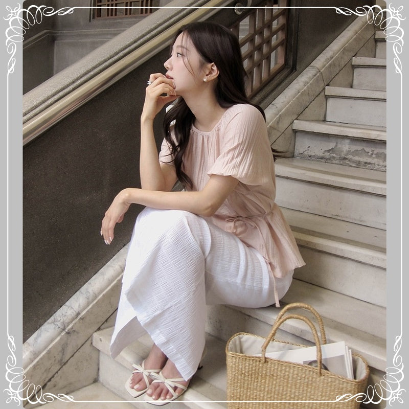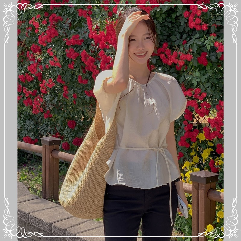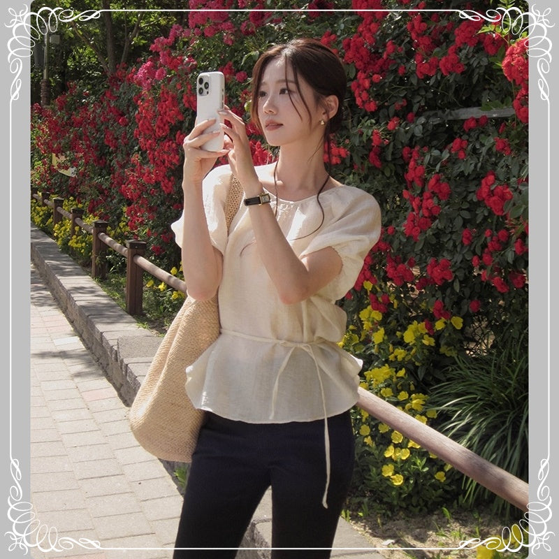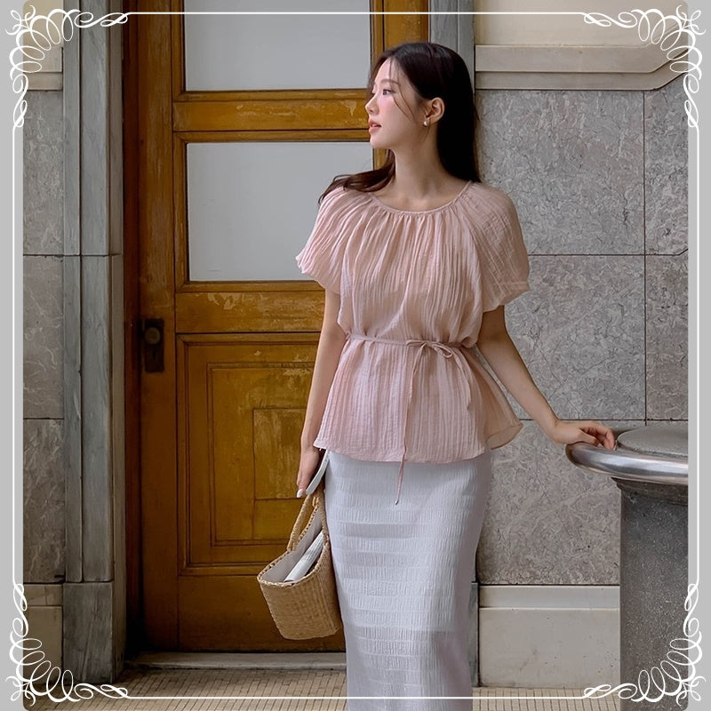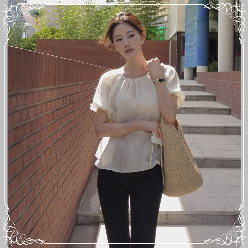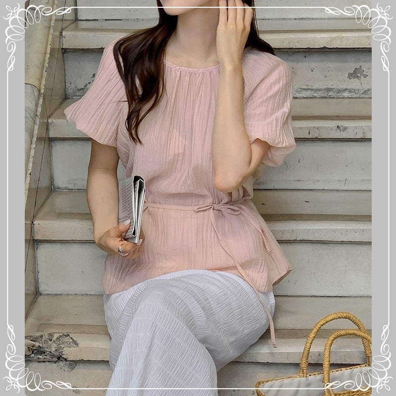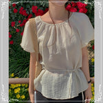 圆领 褶皱 肌理感 系带 雪纺上衣