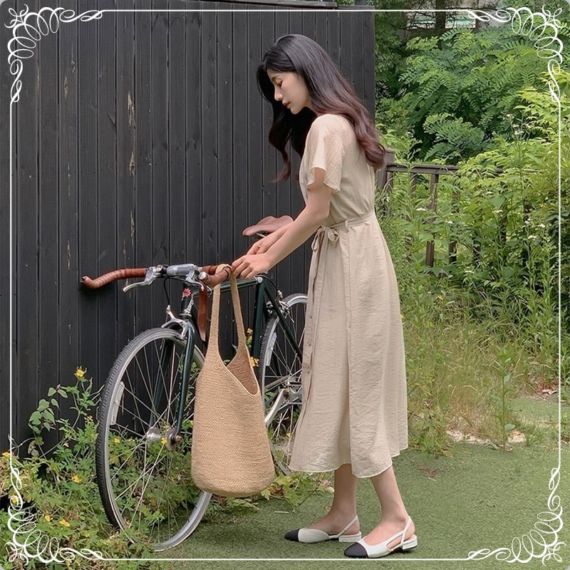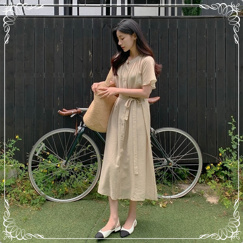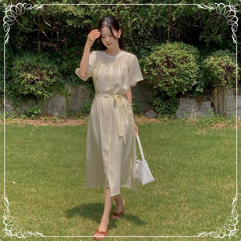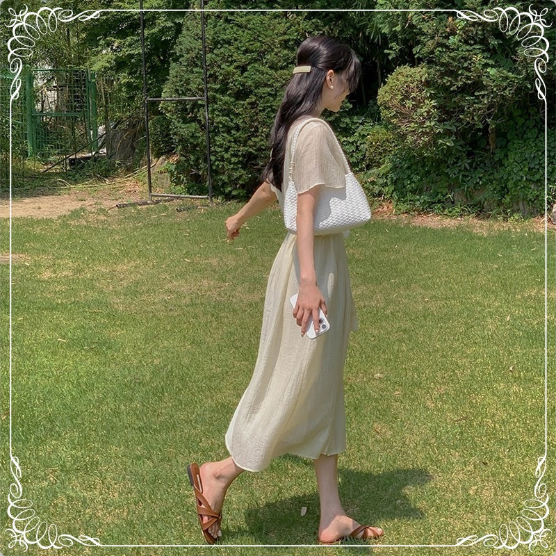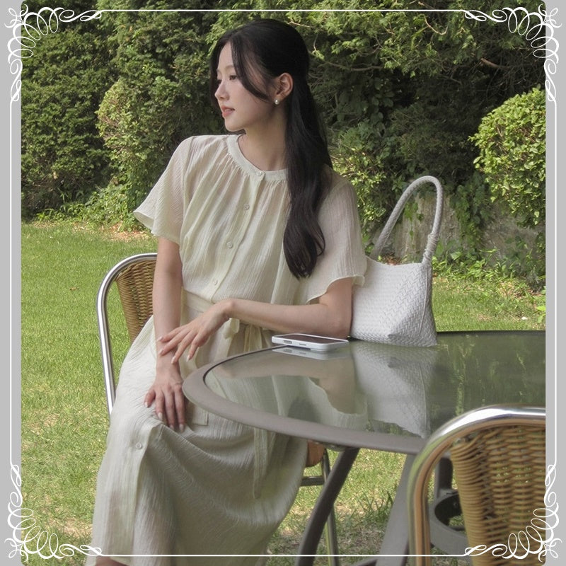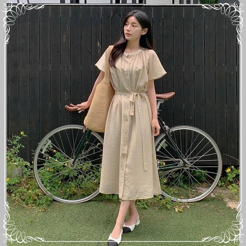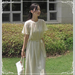 立领 荷叶袖 系带 内搭吊带连衣裙 两件套