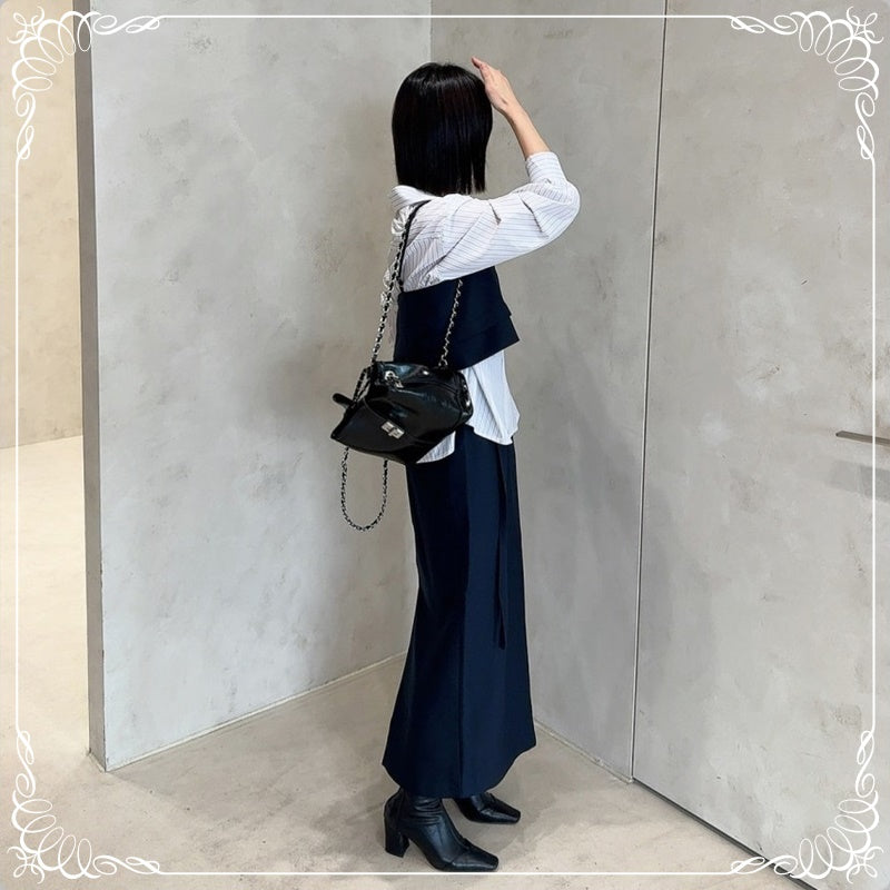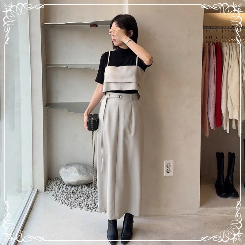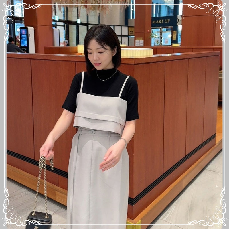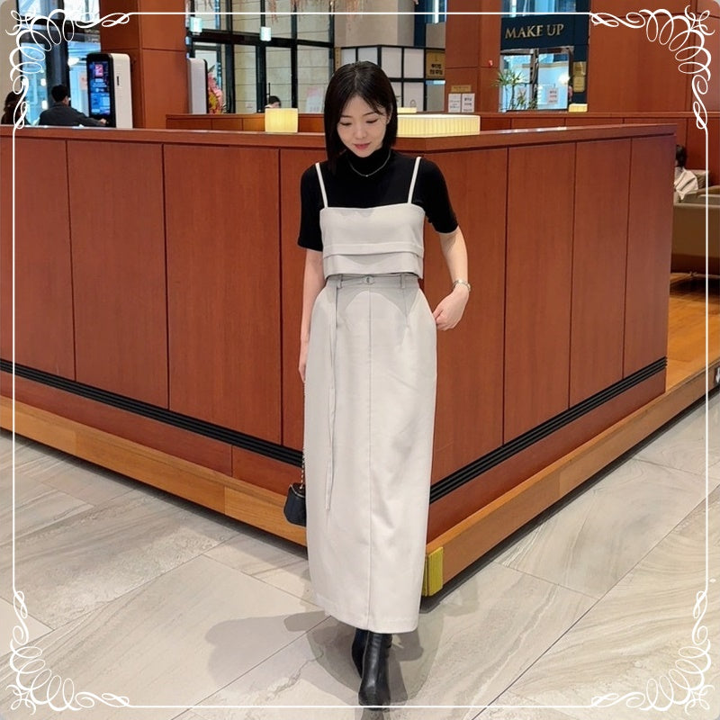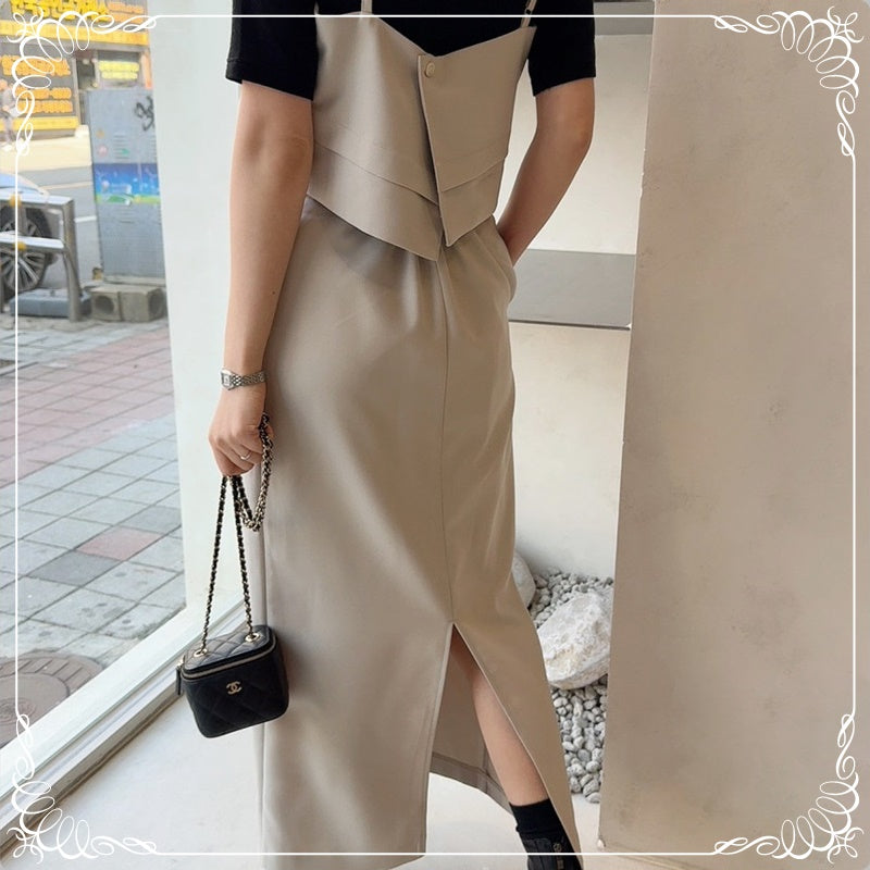 吊带上衣+开叉半身裙 套装