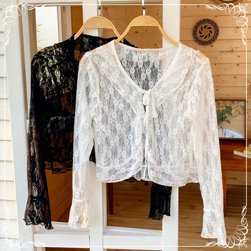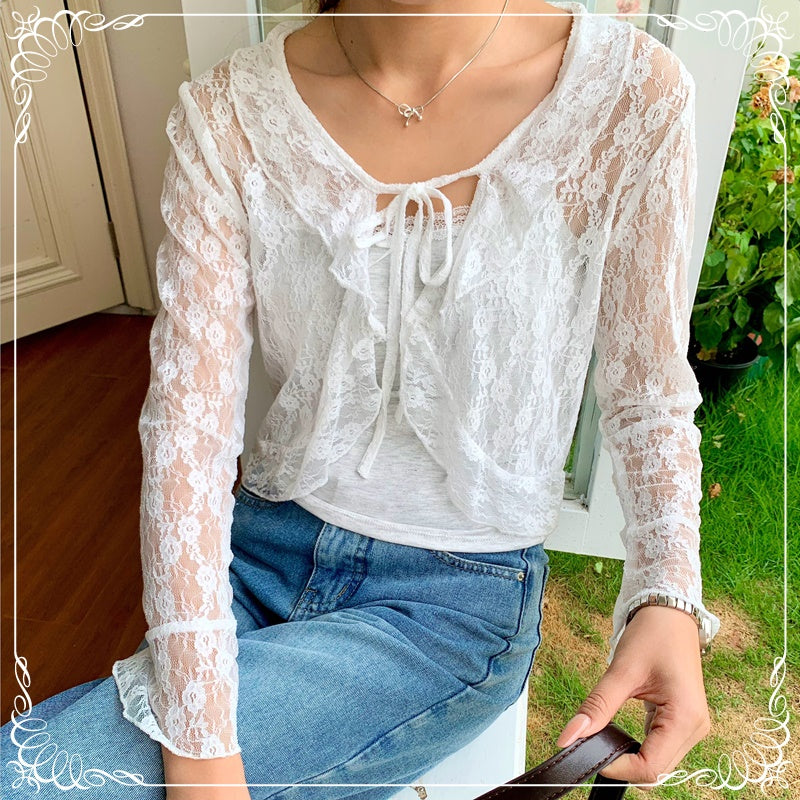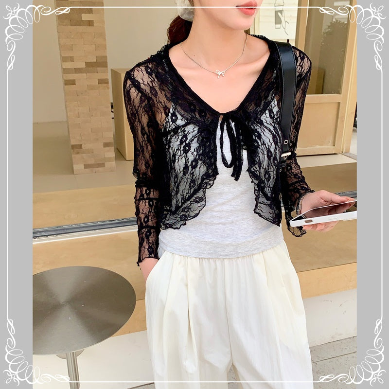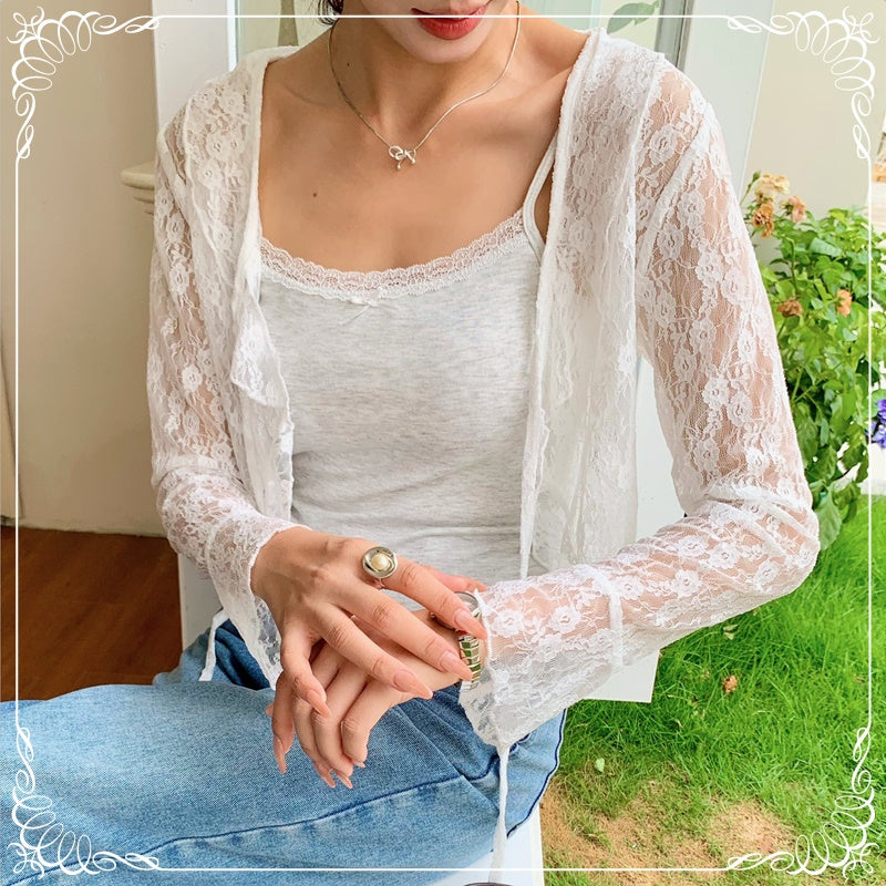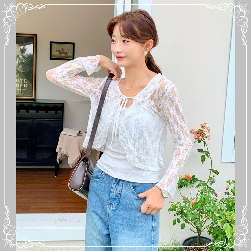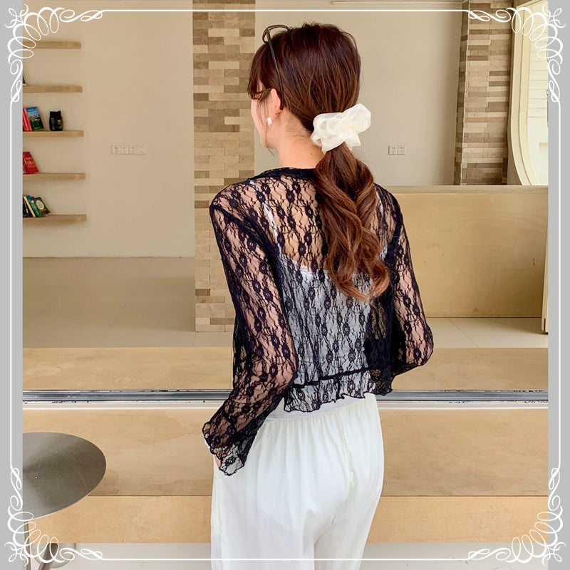 花朵 蕾丝 荷叶边 防晒 上衣