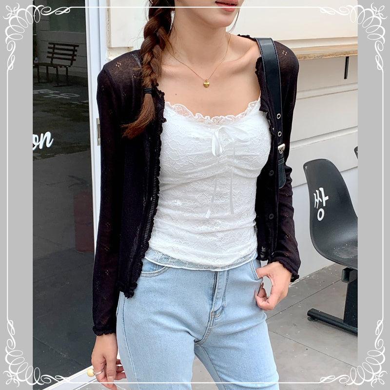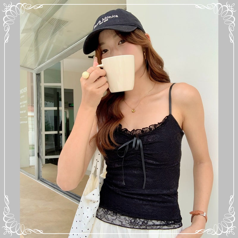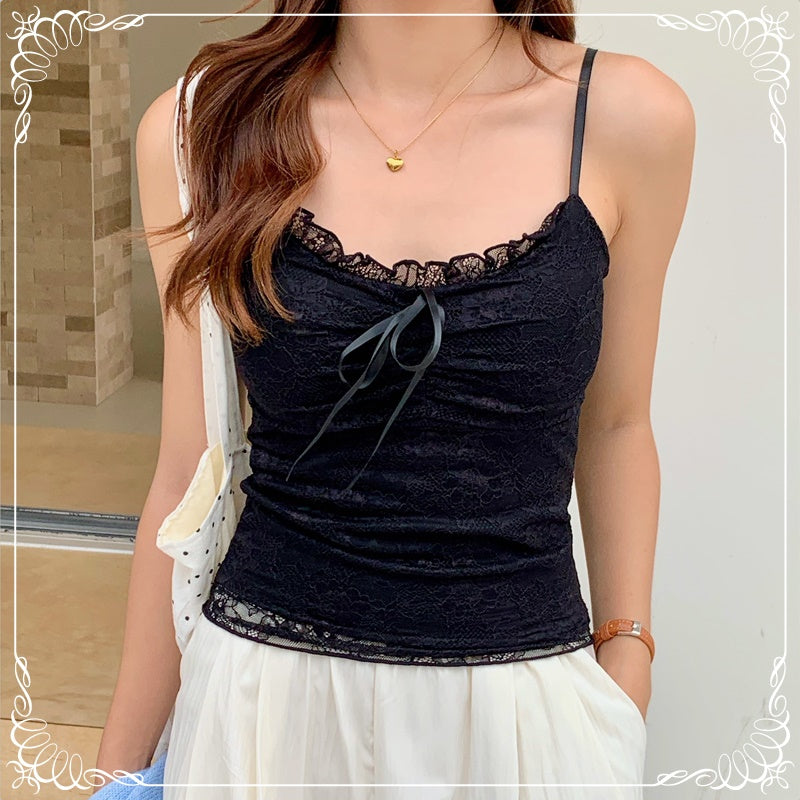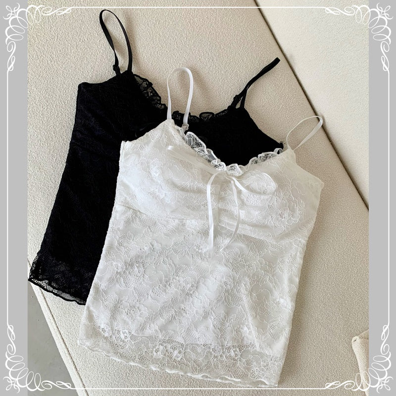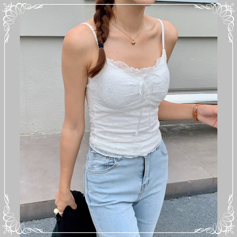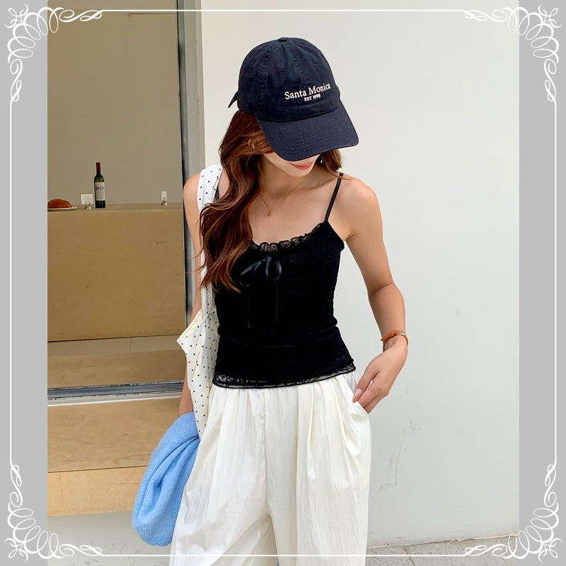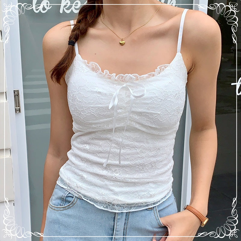 蕾丝边 蝴蝶结 胸垫 吊带背心