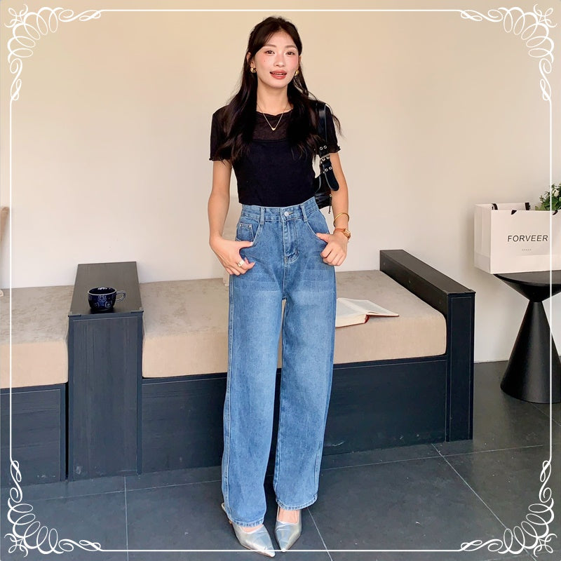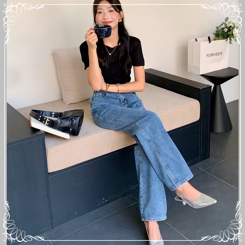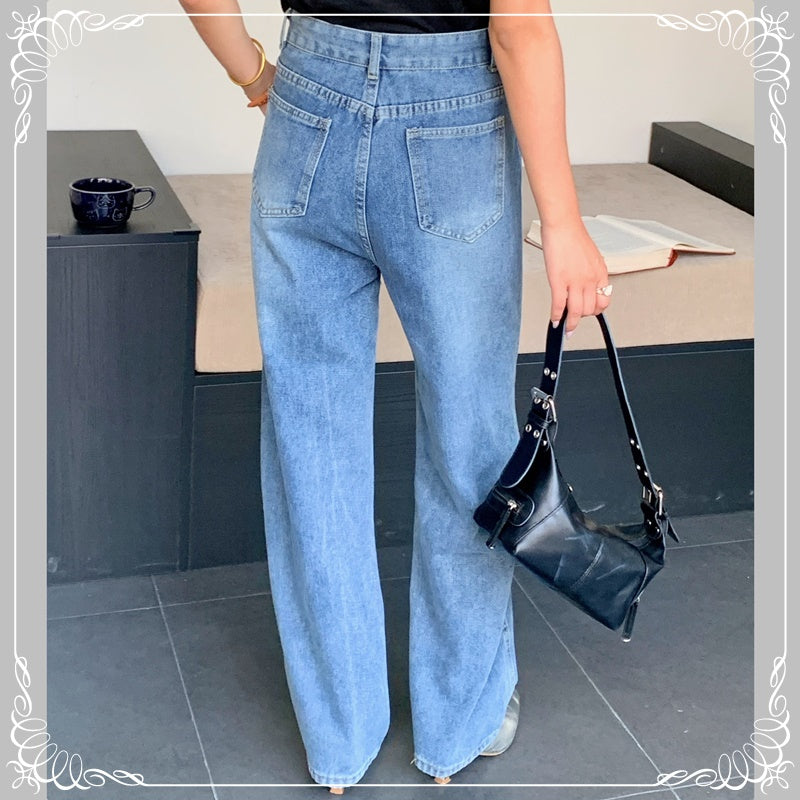 高腰 直筒 牛仔