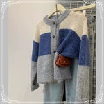 撞色 浣熊绒 开衫