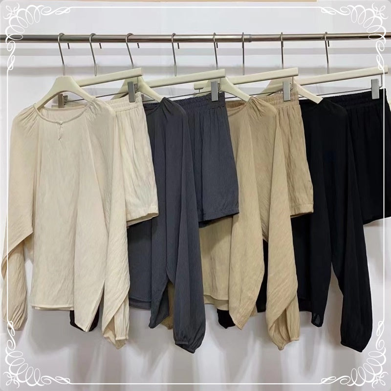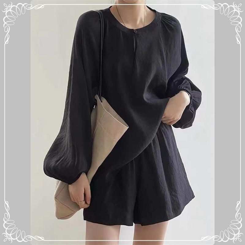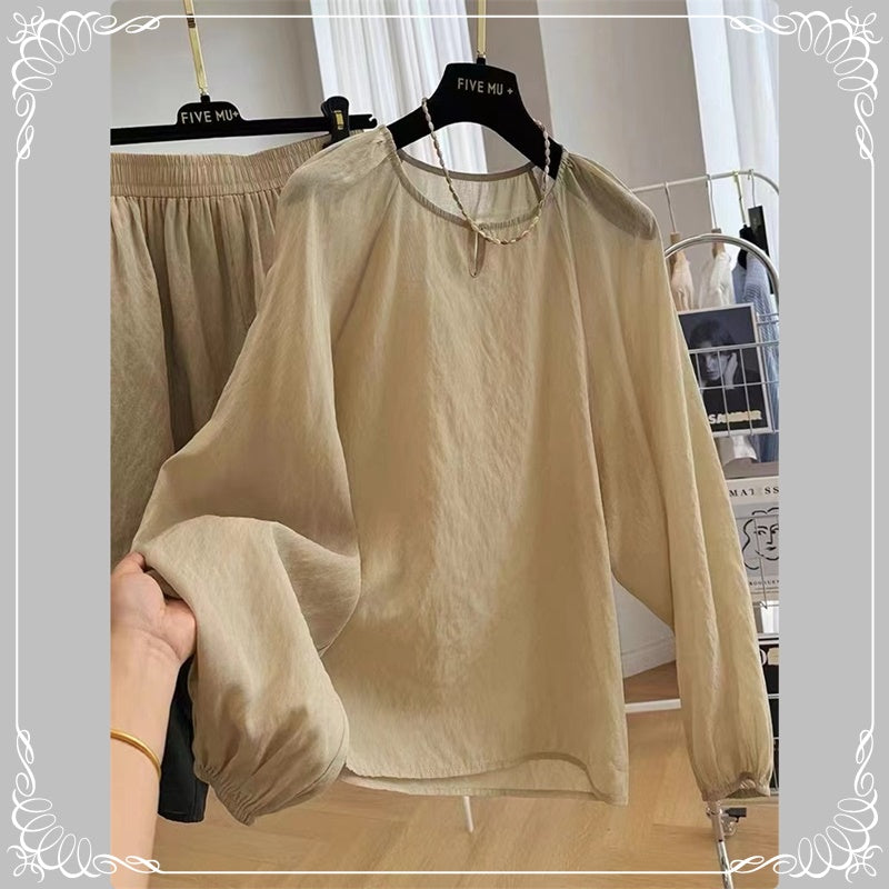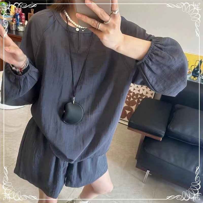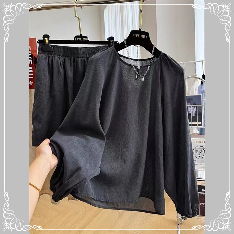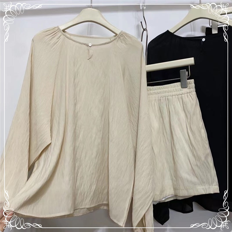 宽松 防晒 衬衣+阔腿短裤 套装