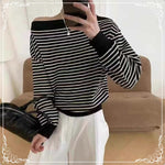 一字肩 条纹上衣