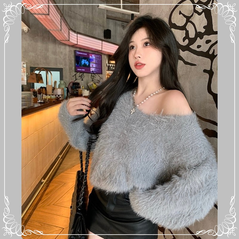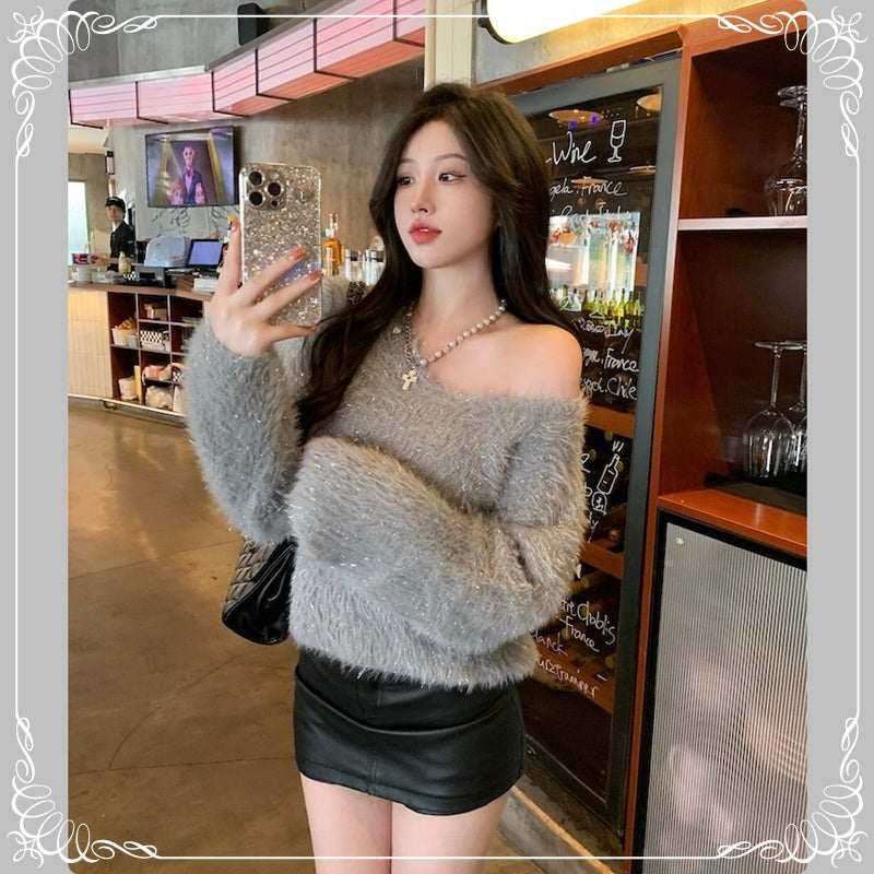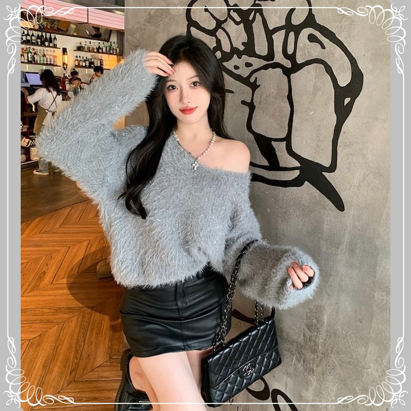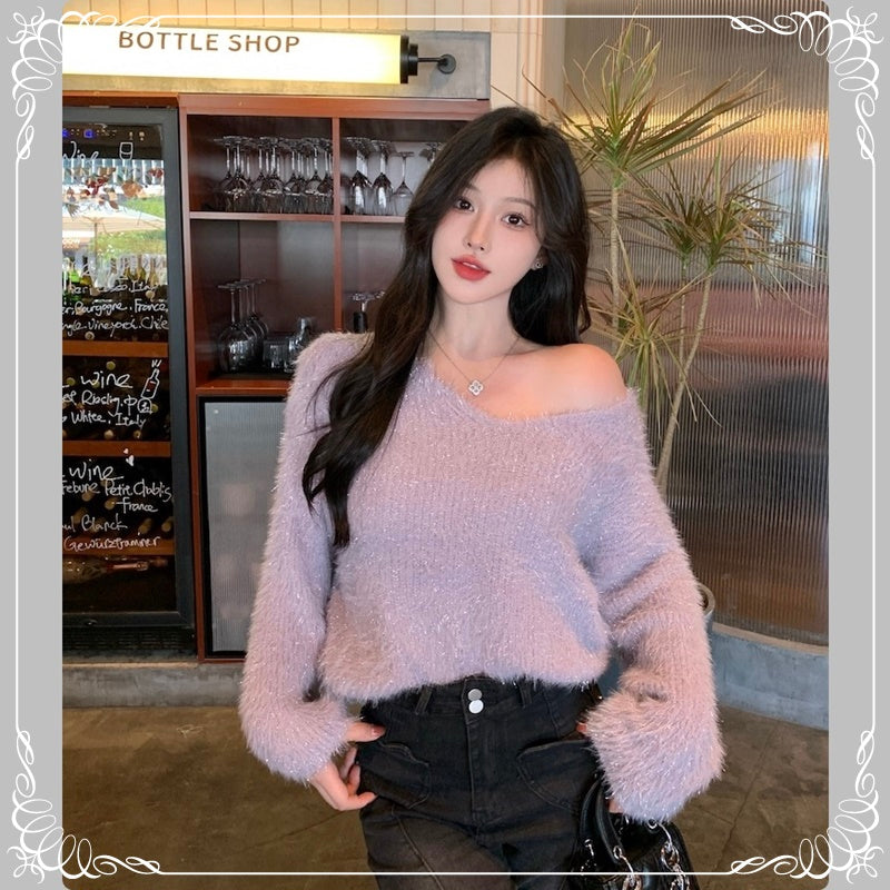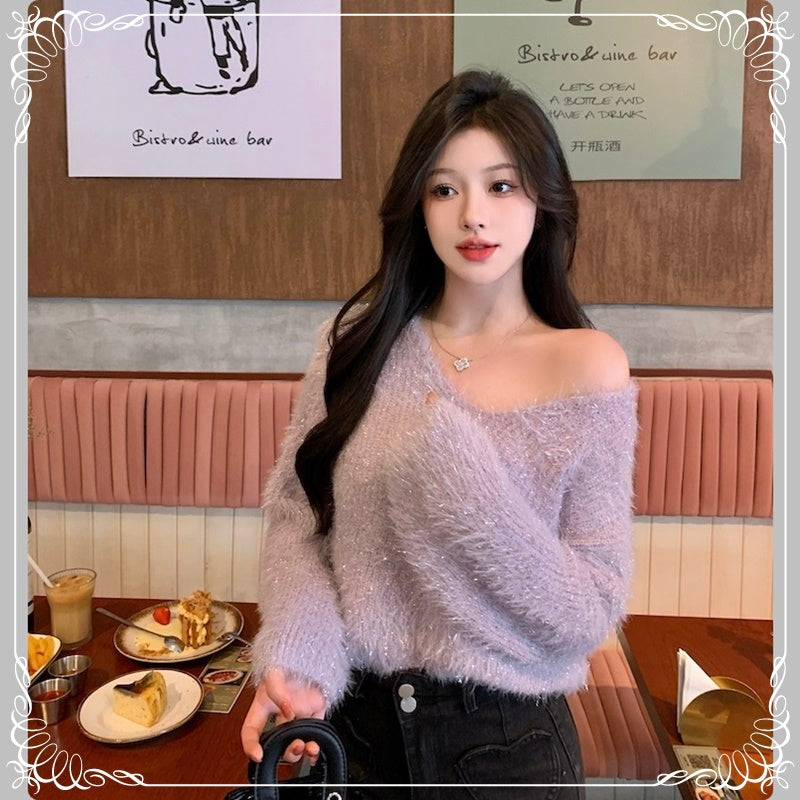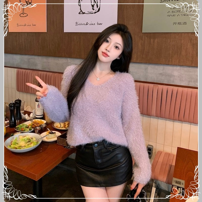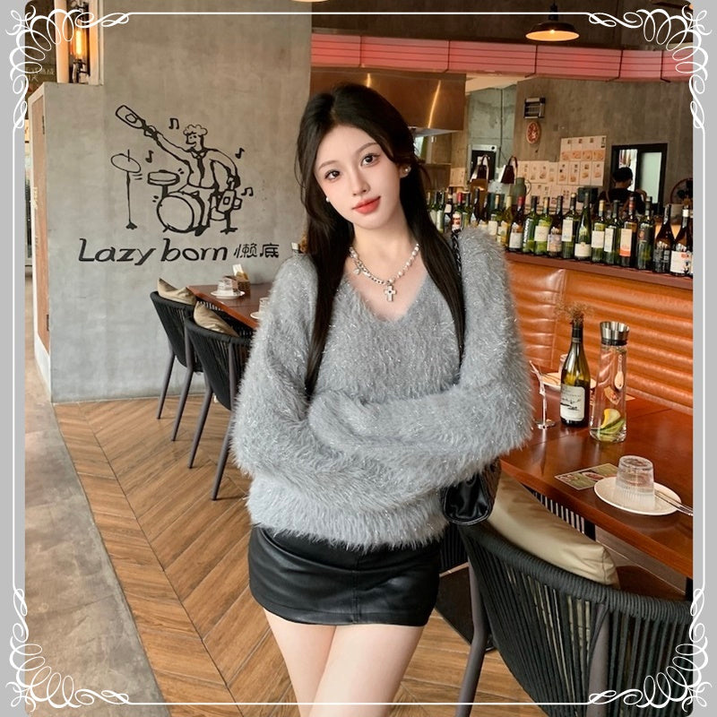 亮丝 马海毛 V领 套头