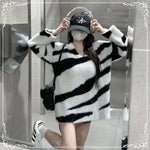 慵懒风 仿貂毛 斑马纹 V领 中长款 套头