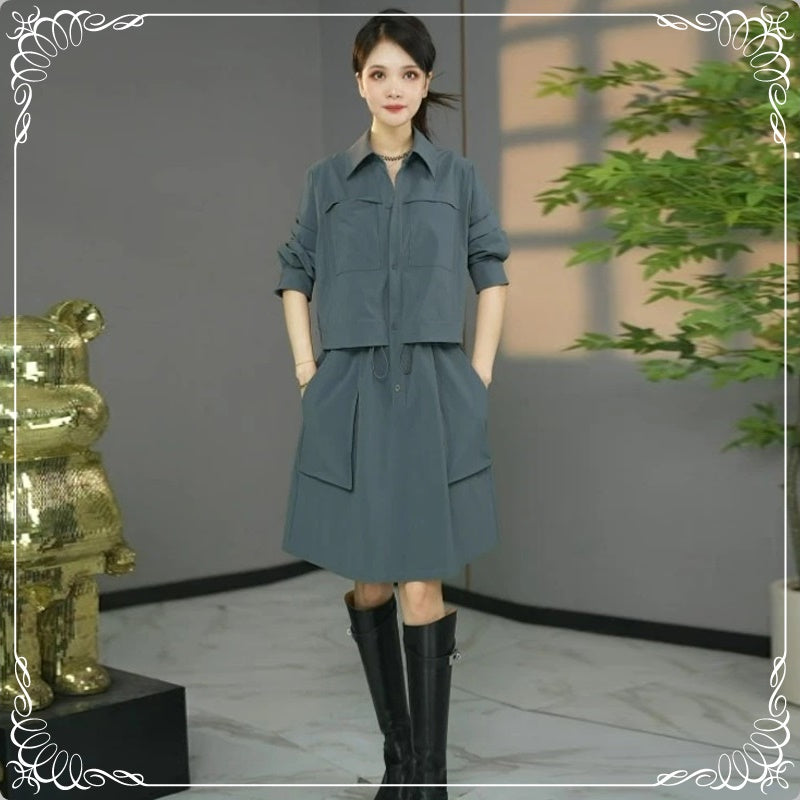 假两件 工装连衣裙