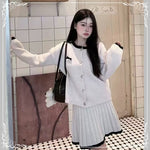 撞色 圆领 开衫+短裙 套装