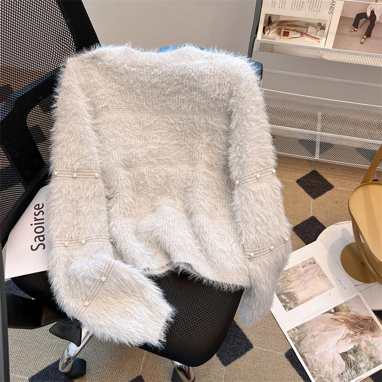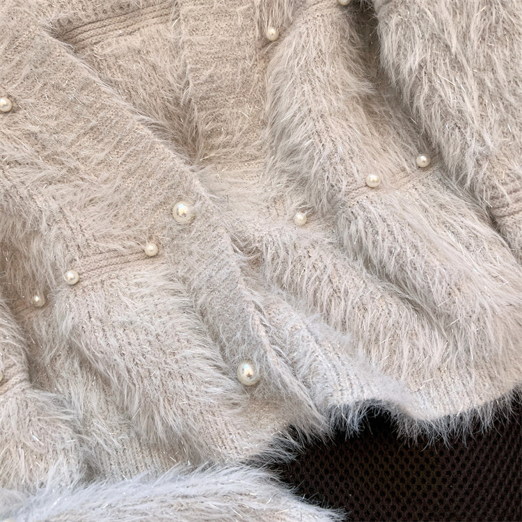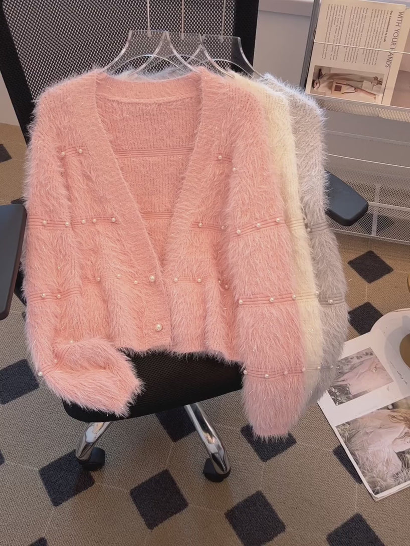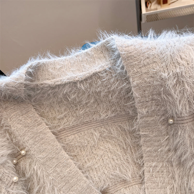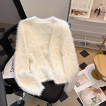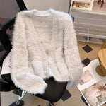 仿貂毛 短款 V领 开衫