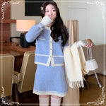 圈圈绒 小香风 开衫+短裙 套装