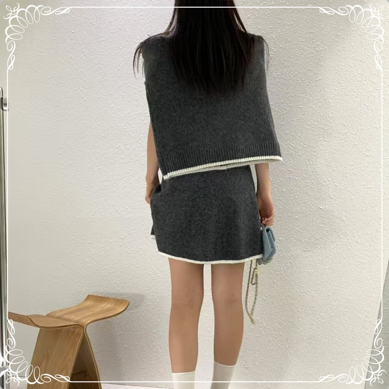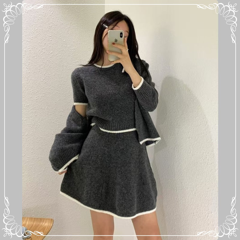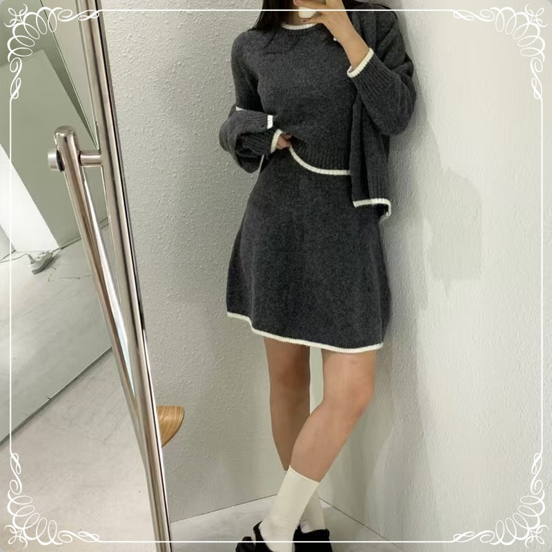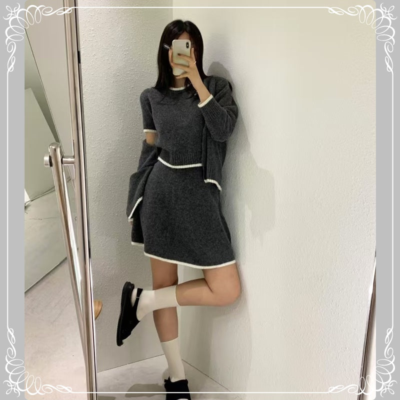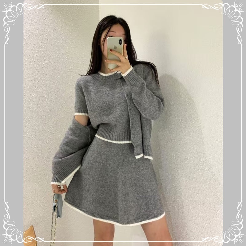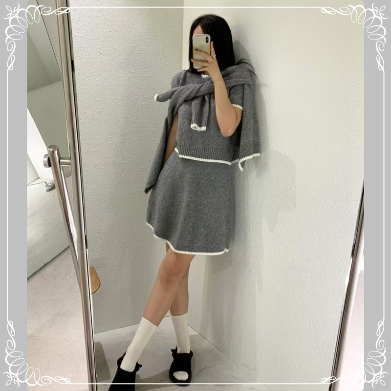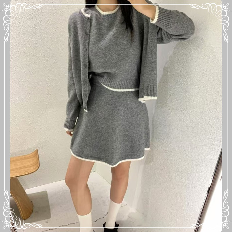 短袖毛衣+短裙+开衫 三件套套装
