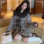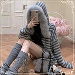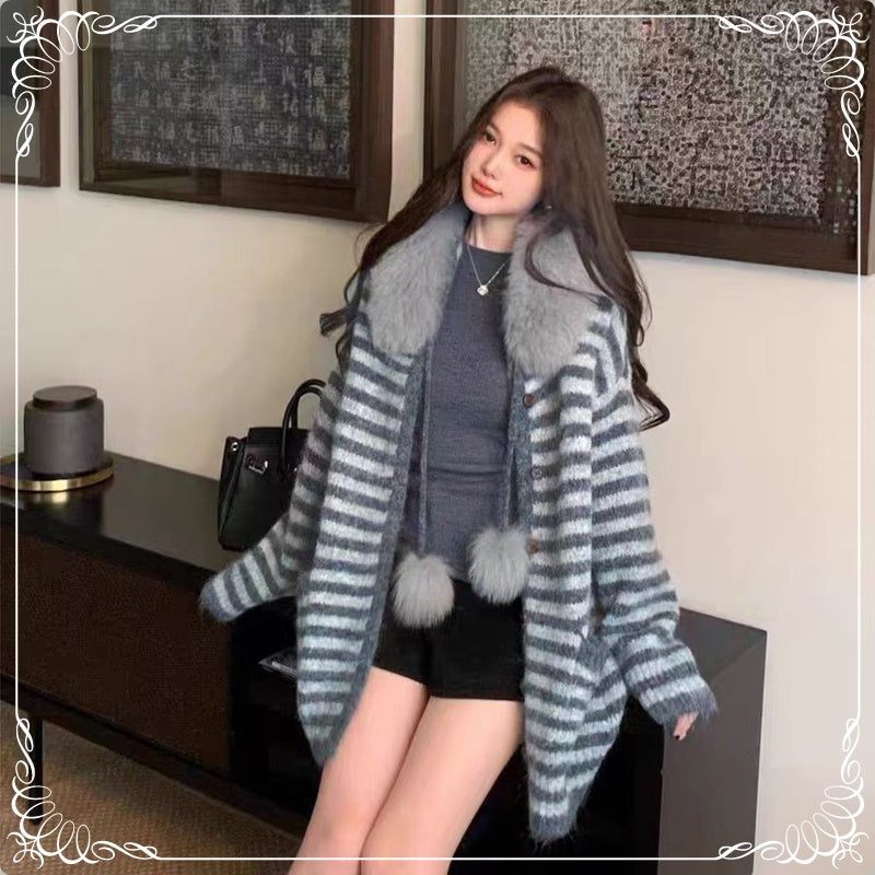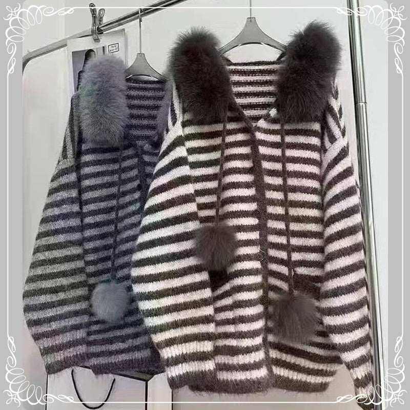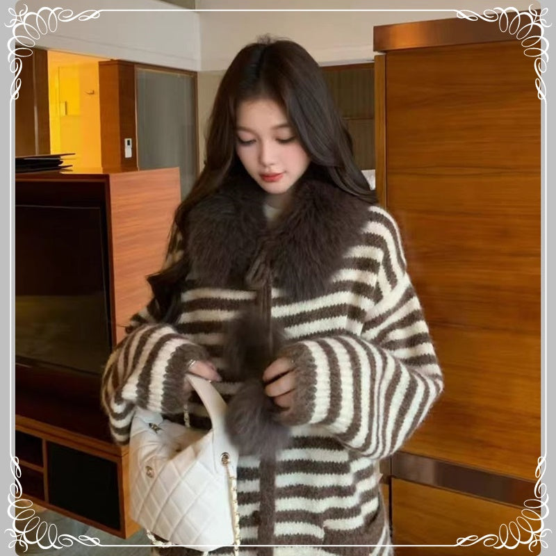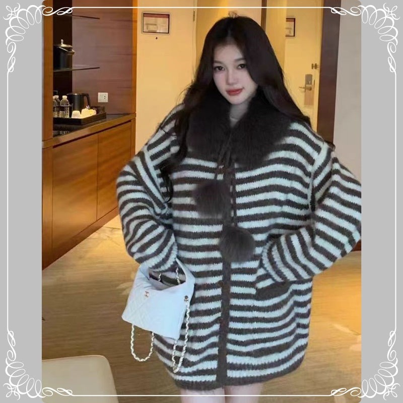 条纹 慵懒风 可拆卸毛领
