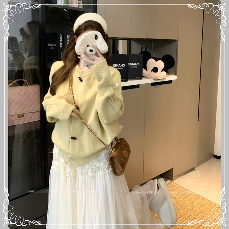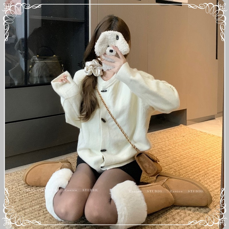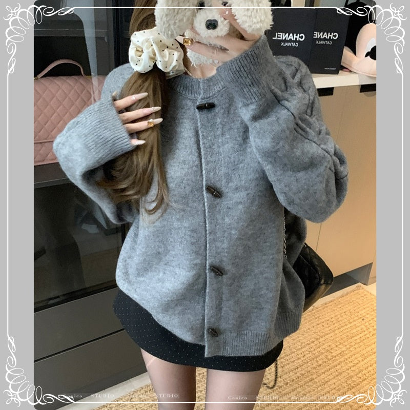 牛角扣 慵懒风 开衫