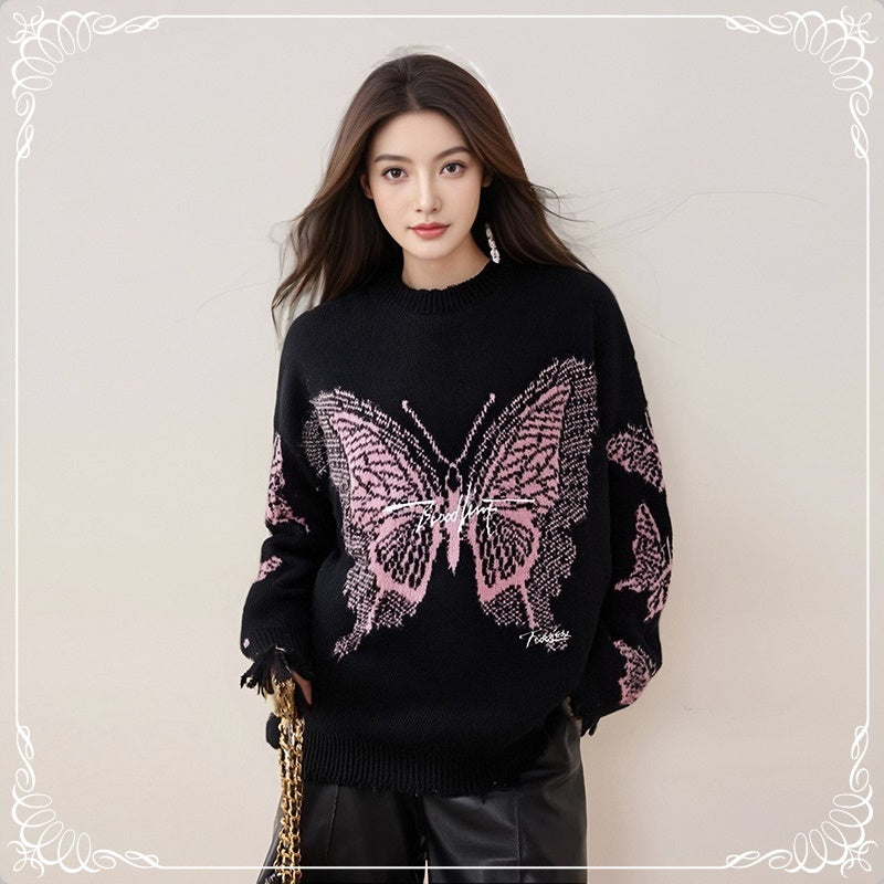蝴蝶提花 破口 套头