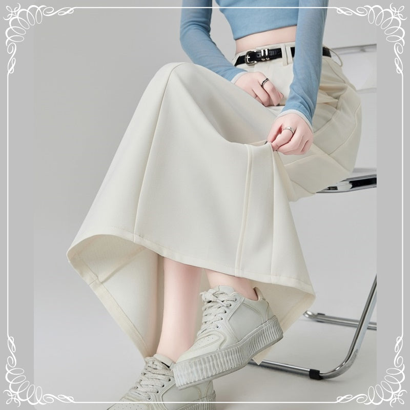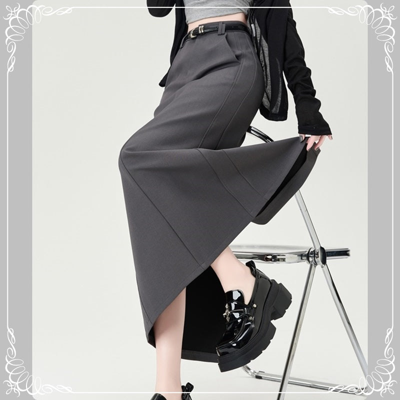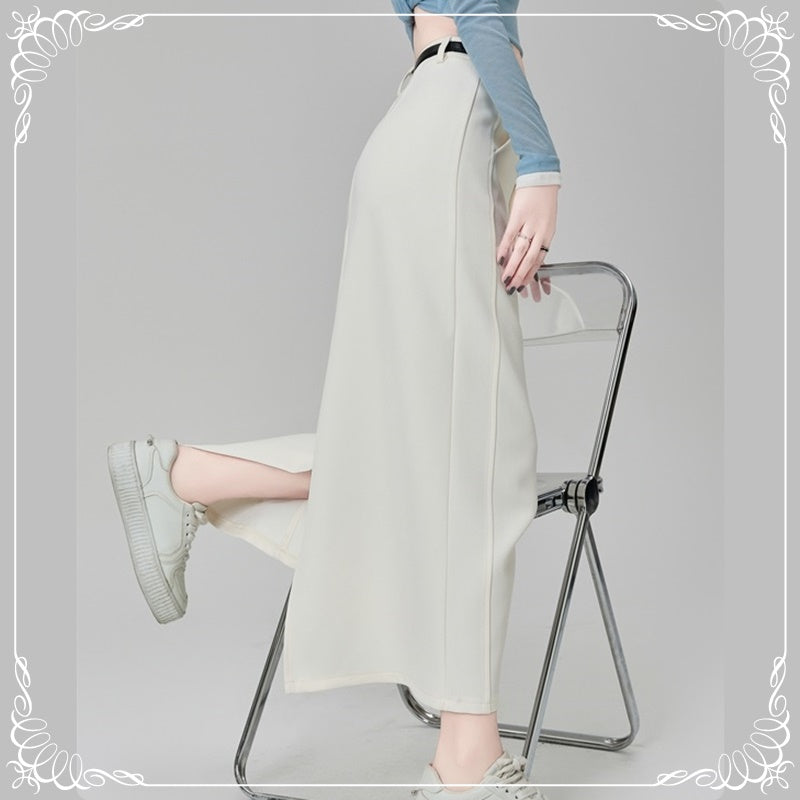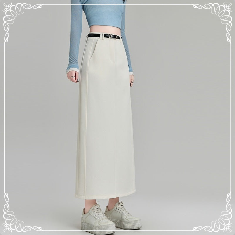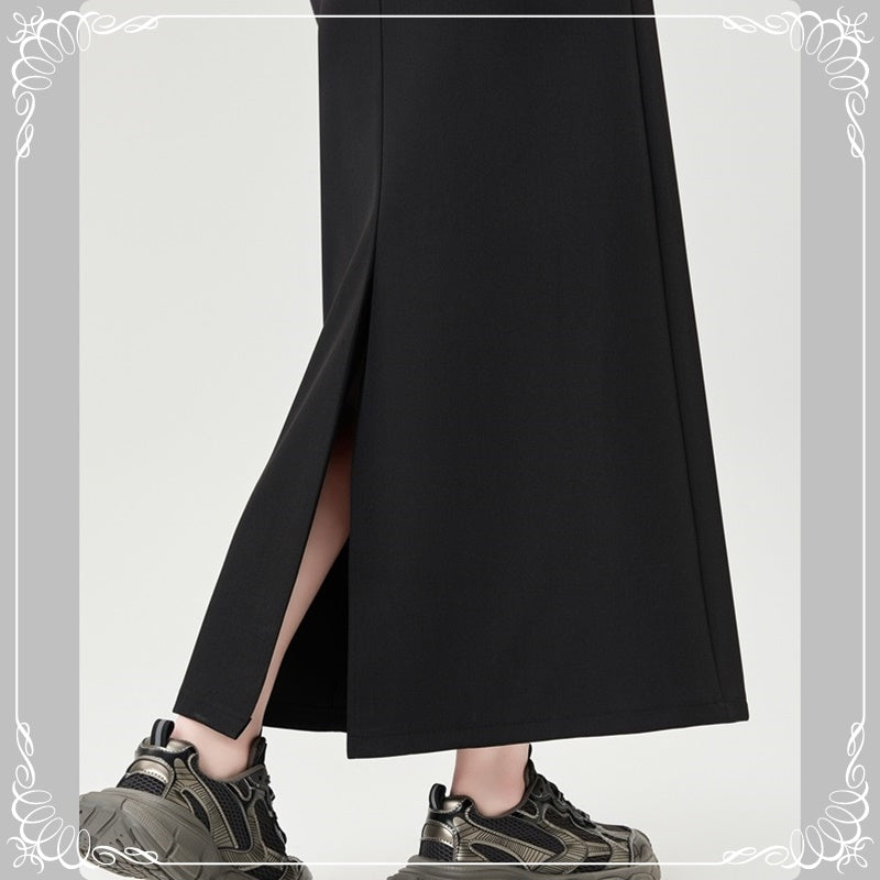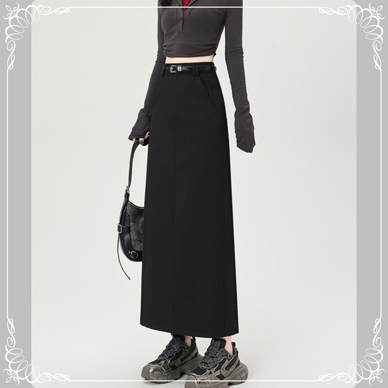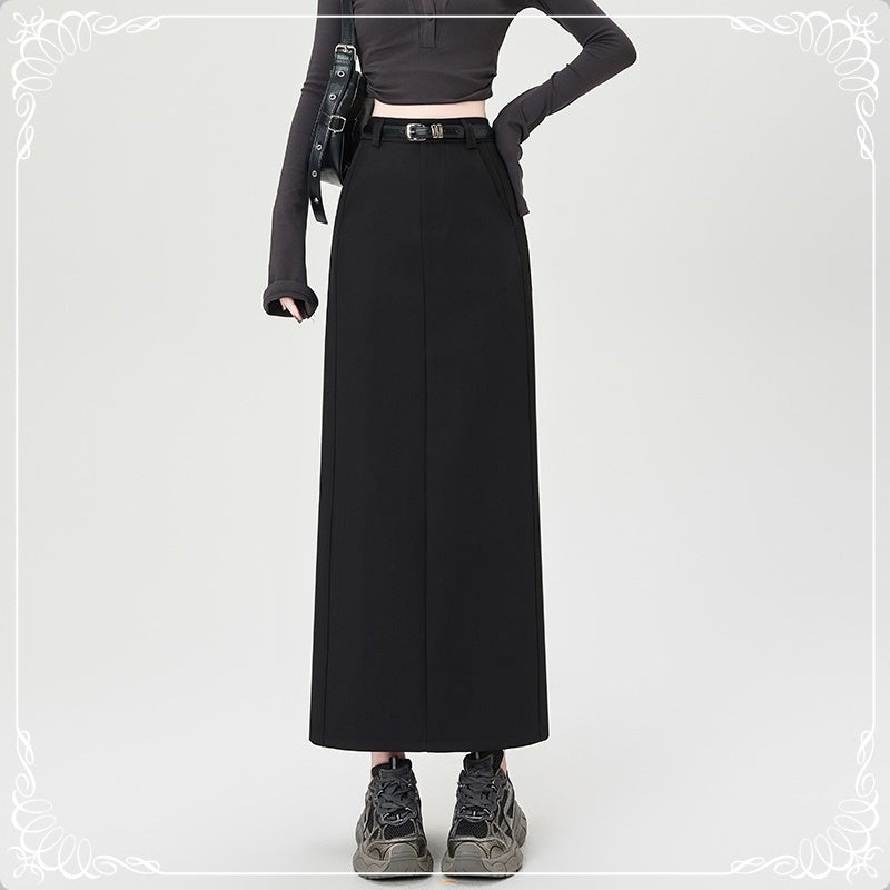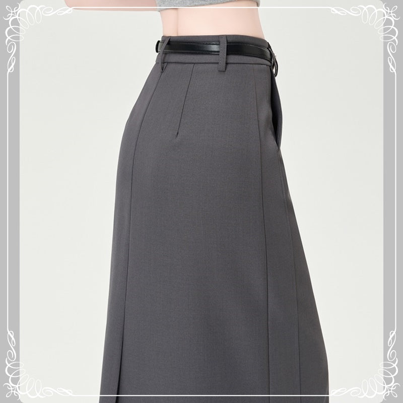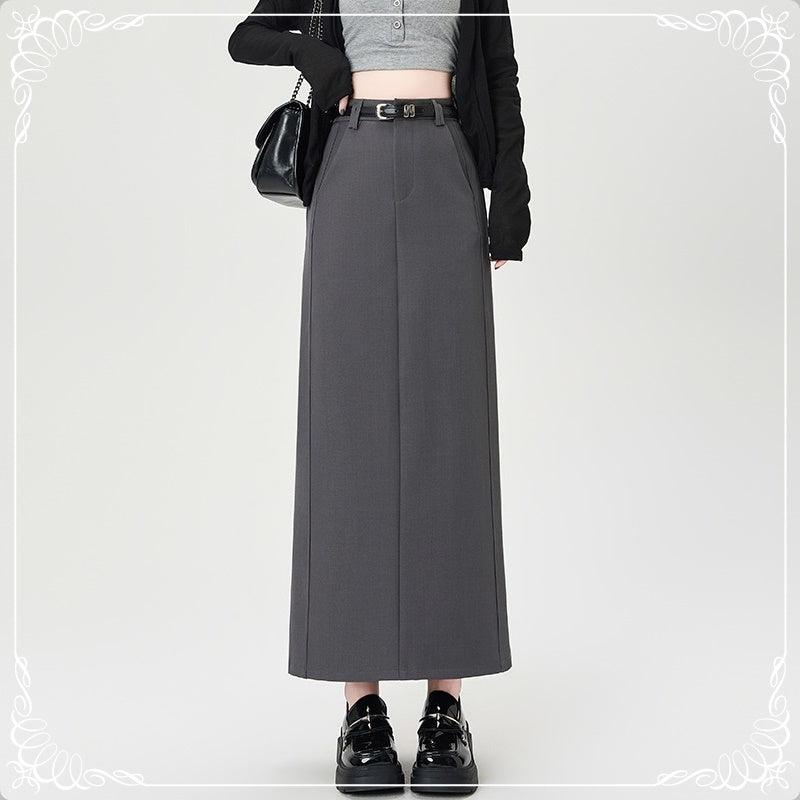 后开叉 中长款 高腰 直筒 西装半裙