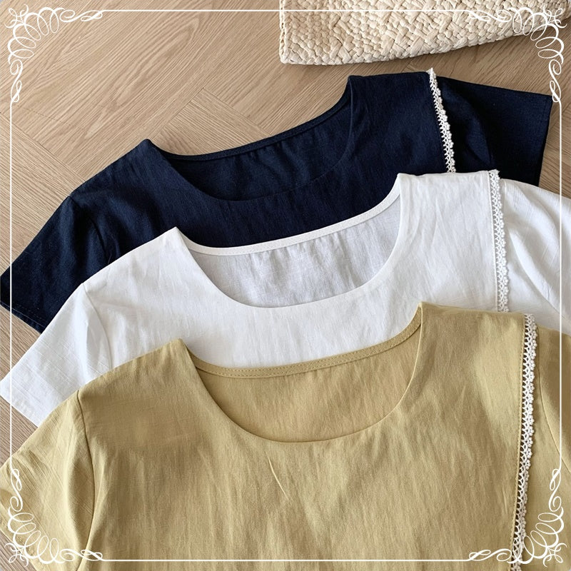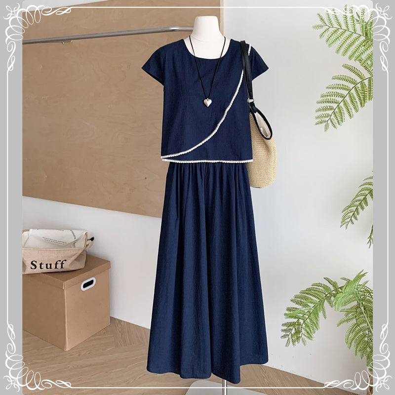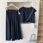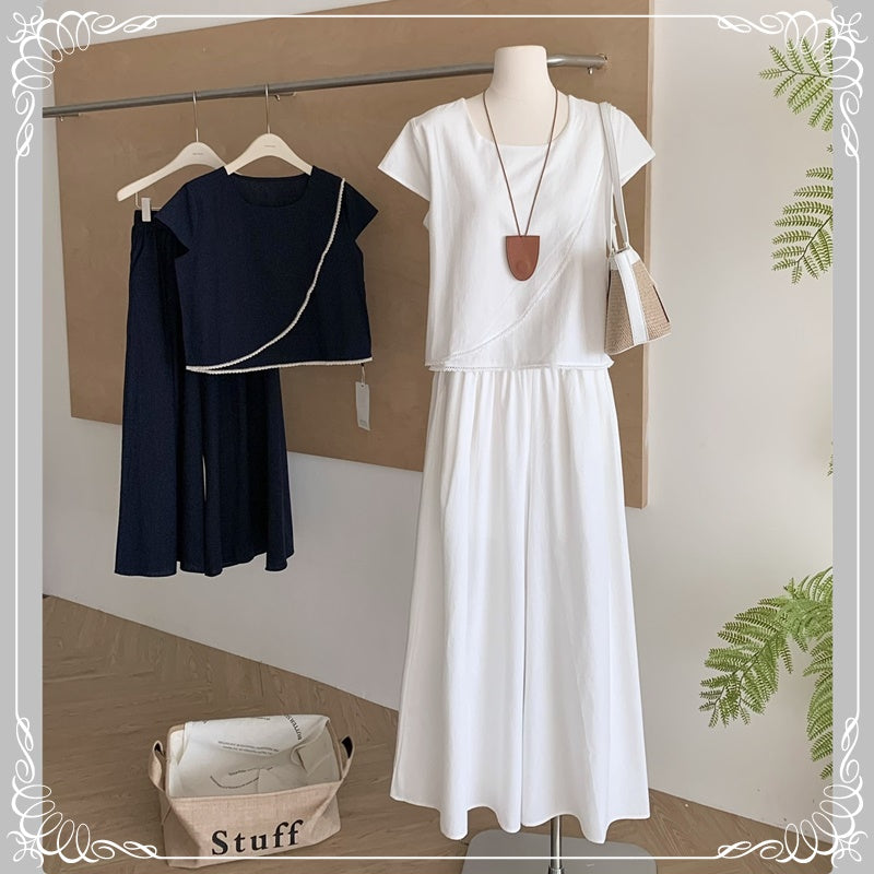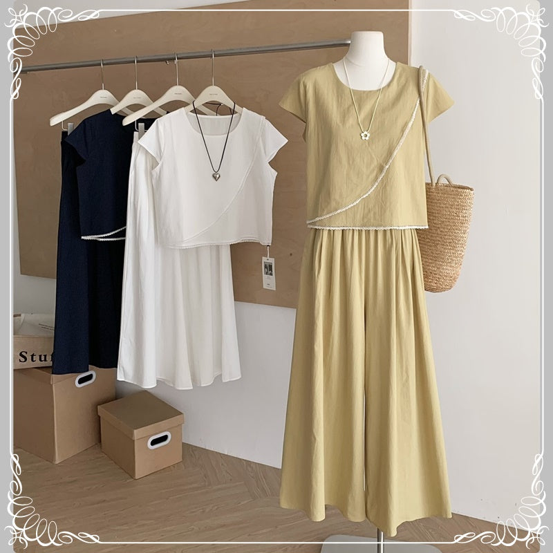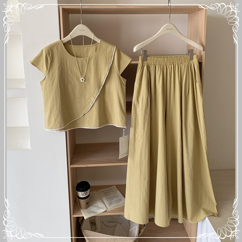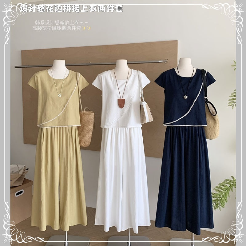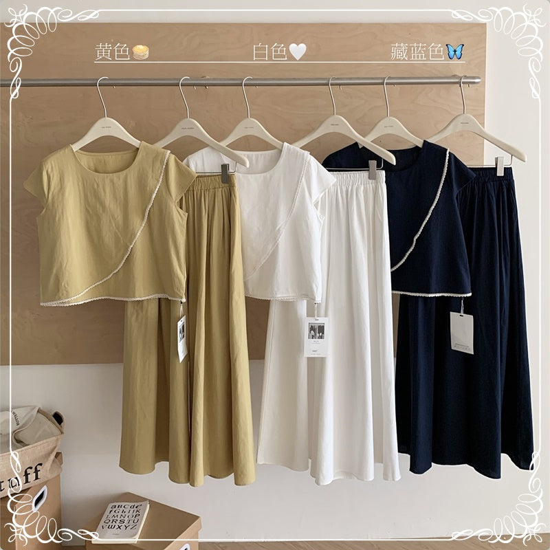 蕾丝边 上衣+阔腿长裤 套装