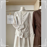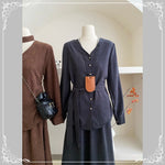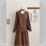 磨毛 V领 开衫上衣 飘带 半身裙 套装