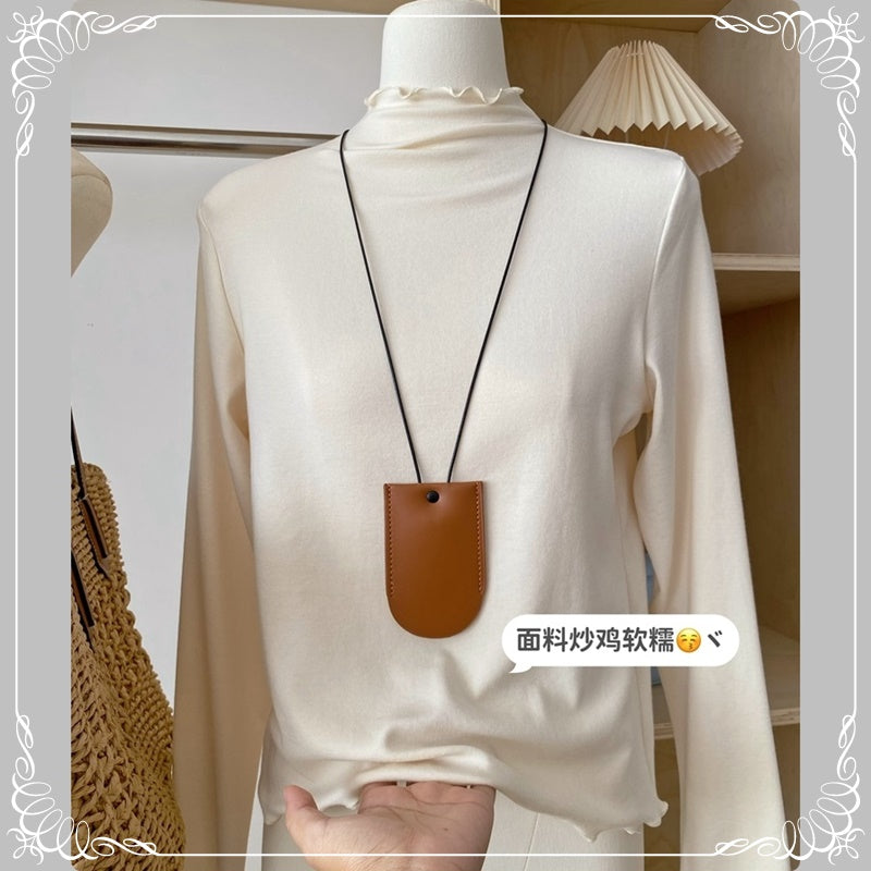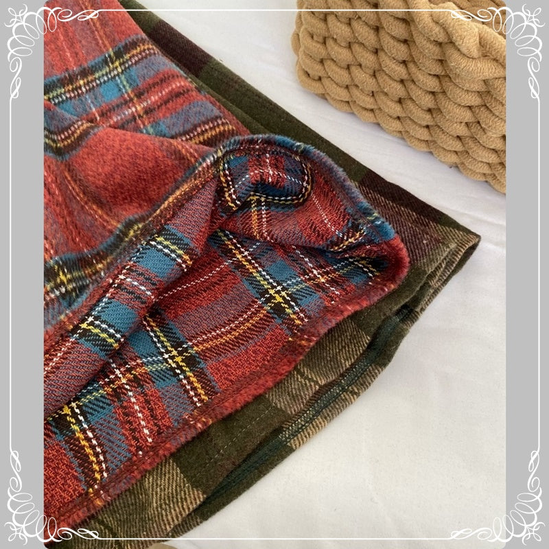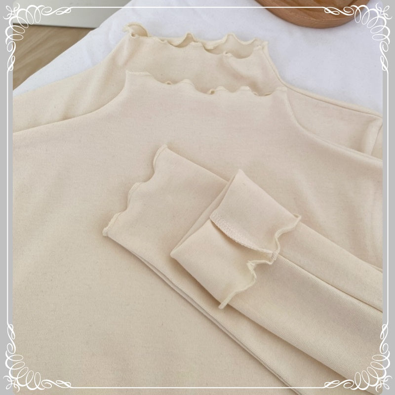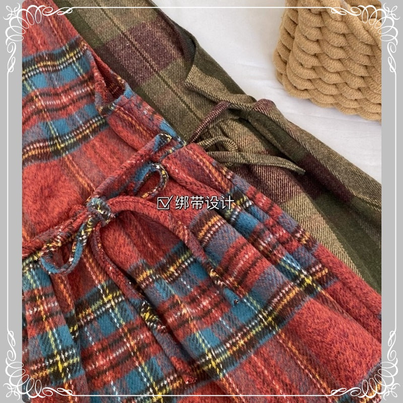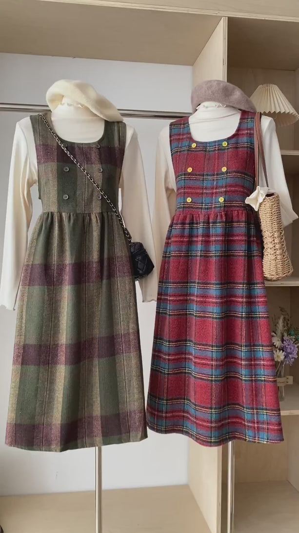 格纹 背带裙+高领花边打底衫 两件套套装
