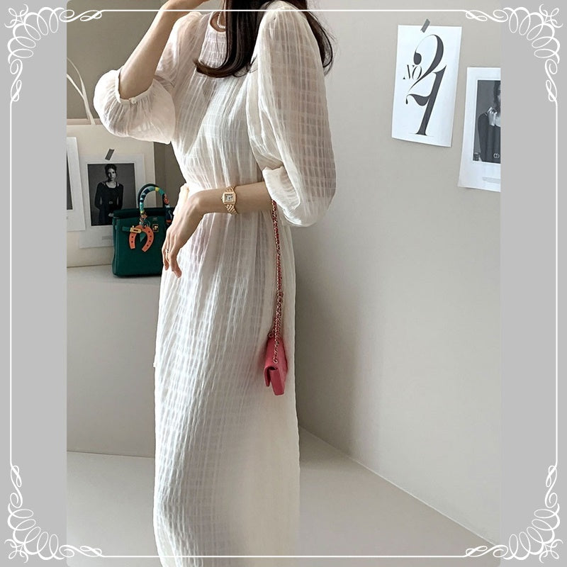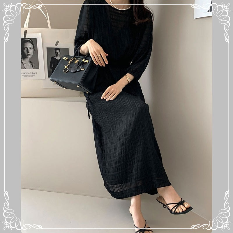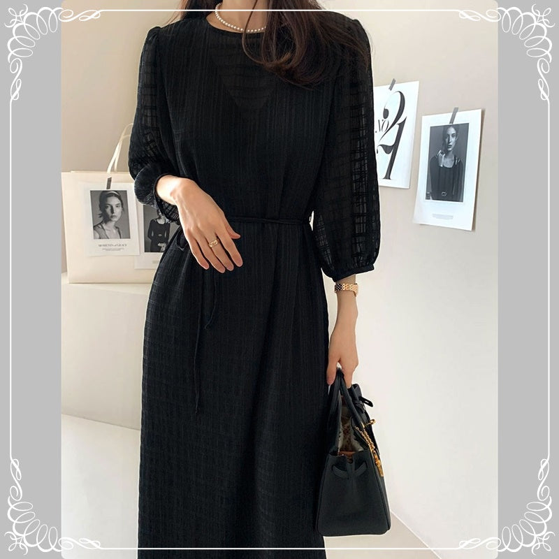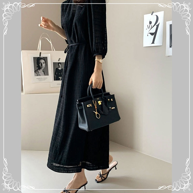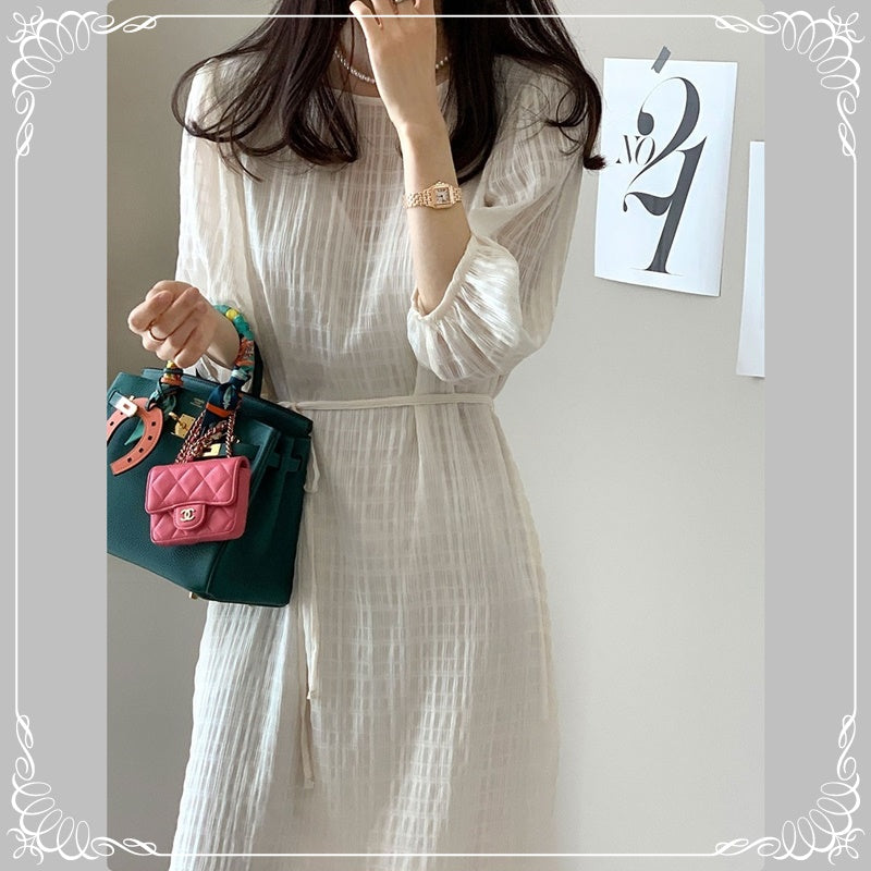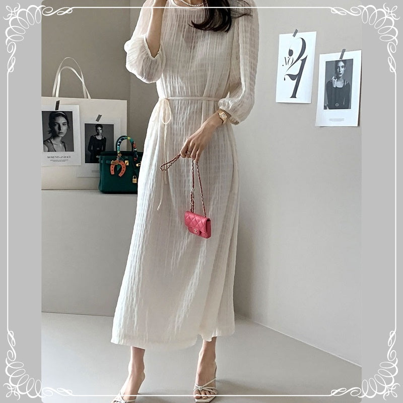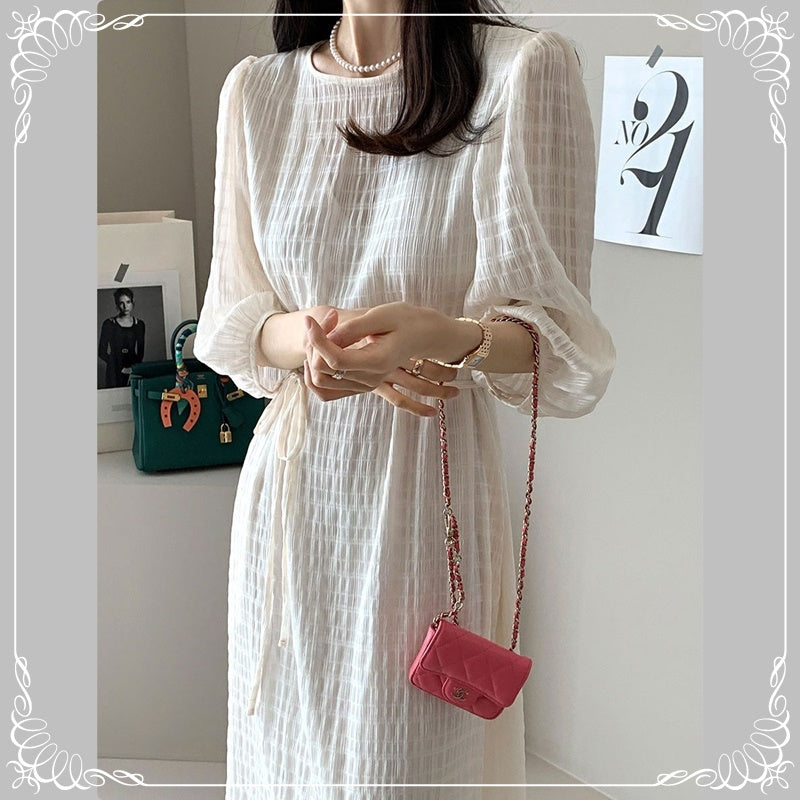 七分袖 系带 开叉 格纹
