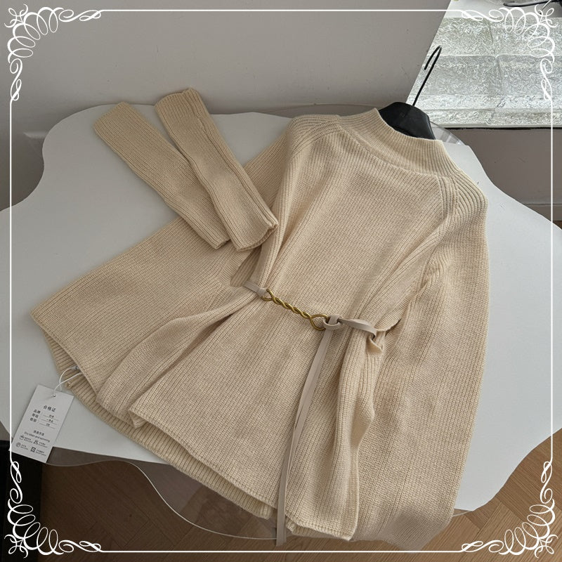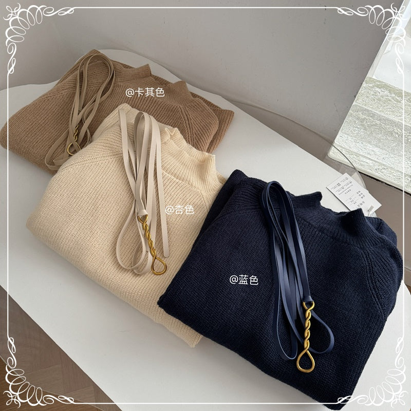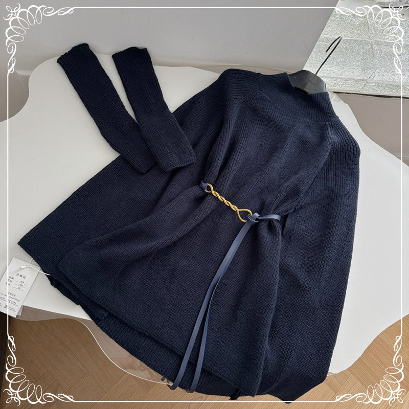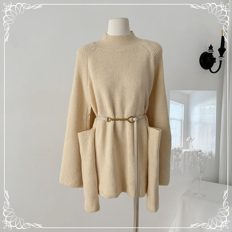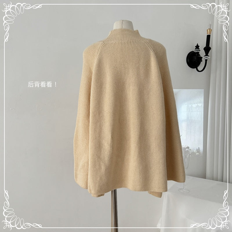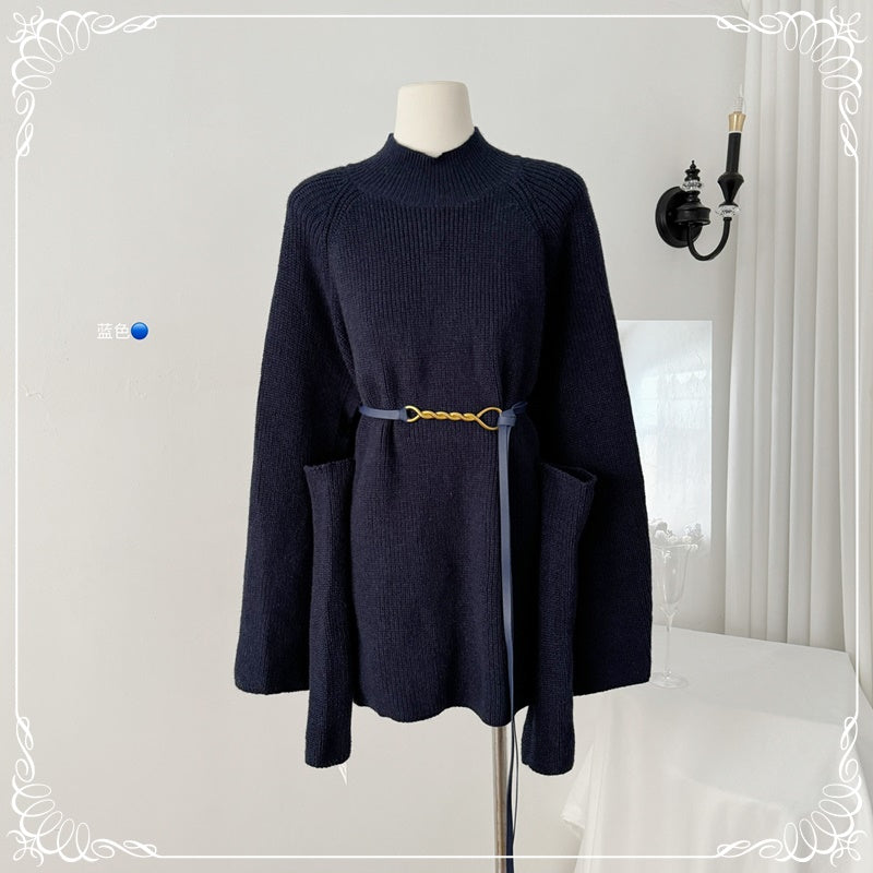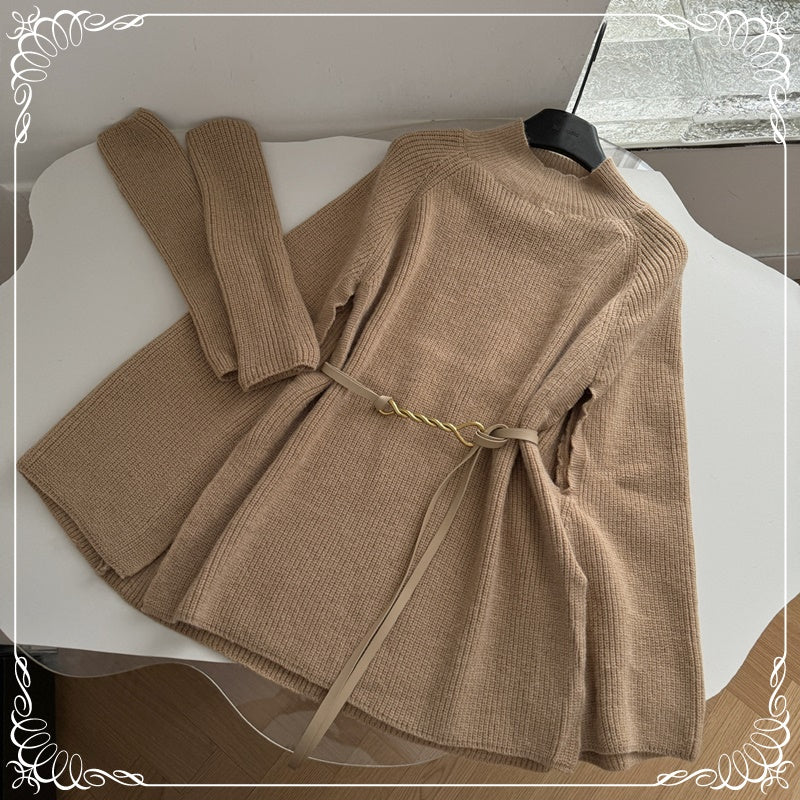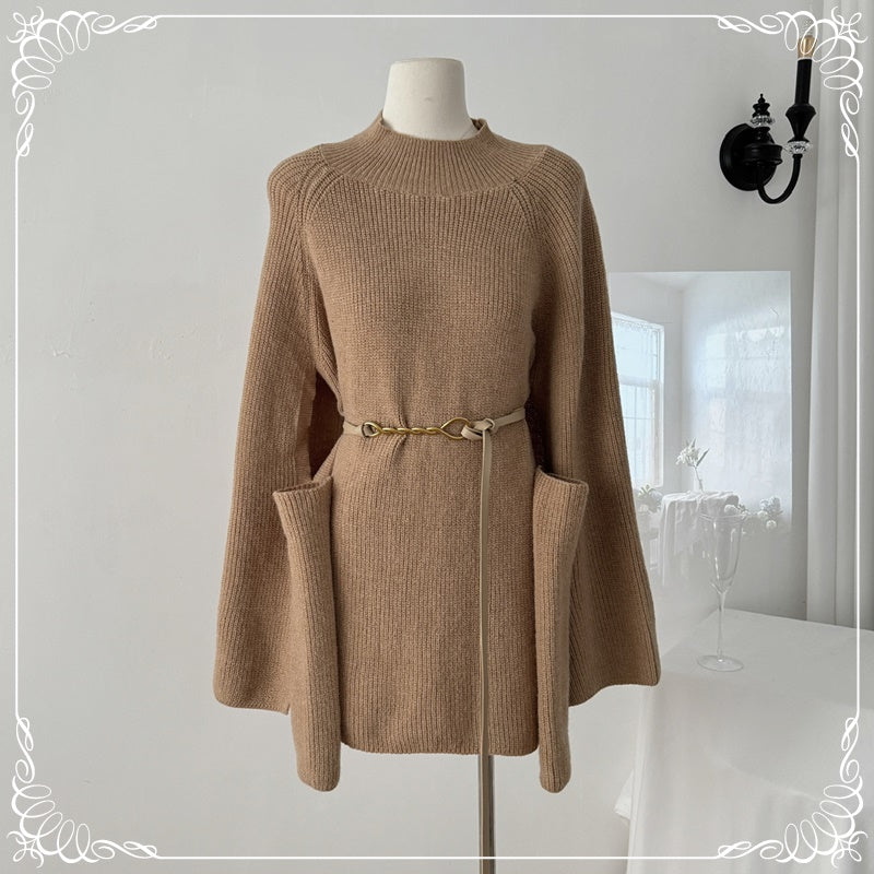 高领 斗篷毛衣 带袖 送腰带
