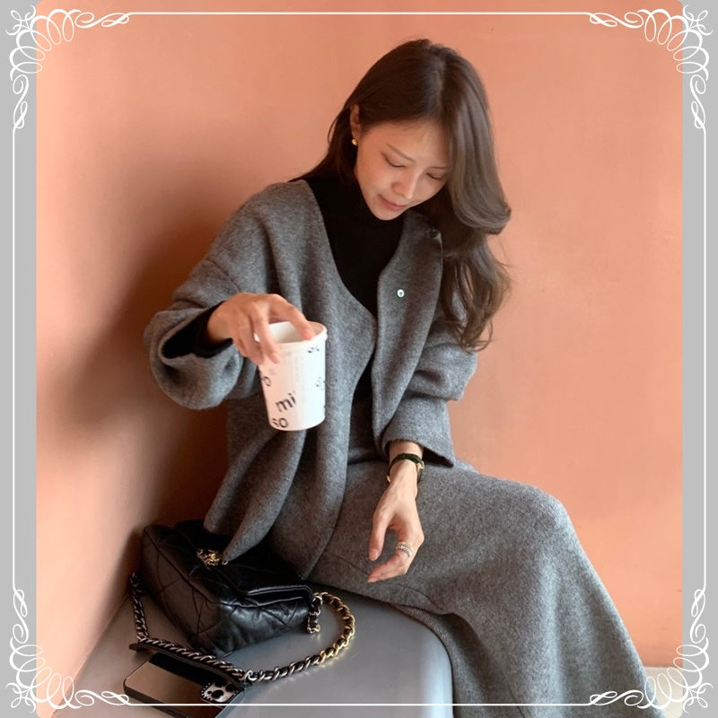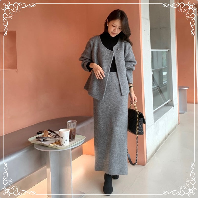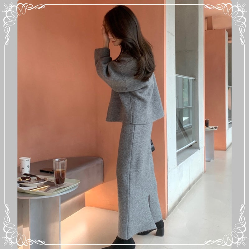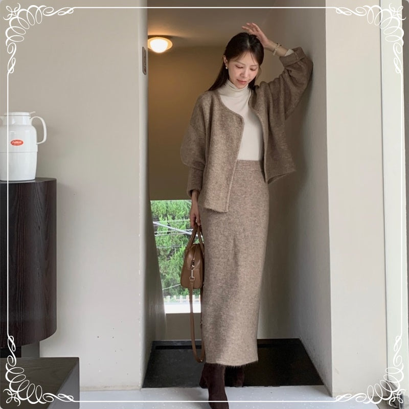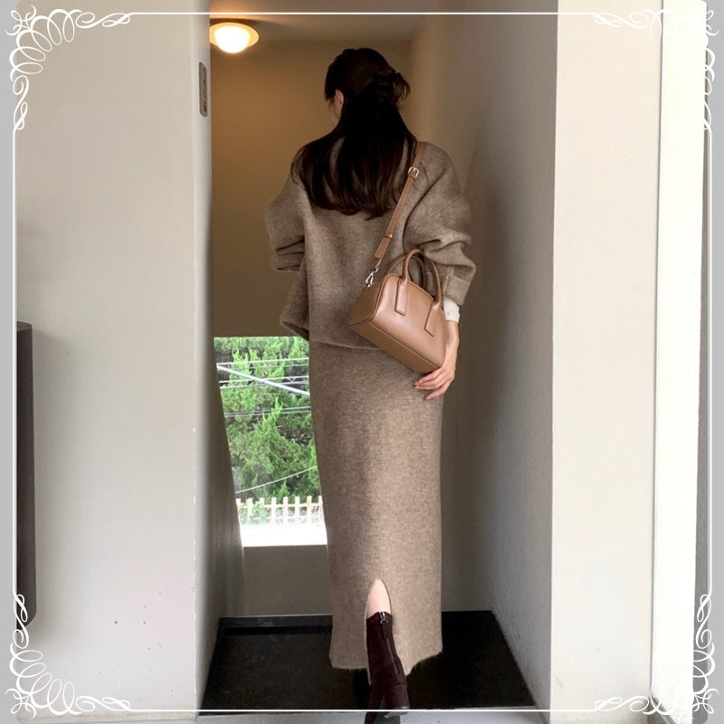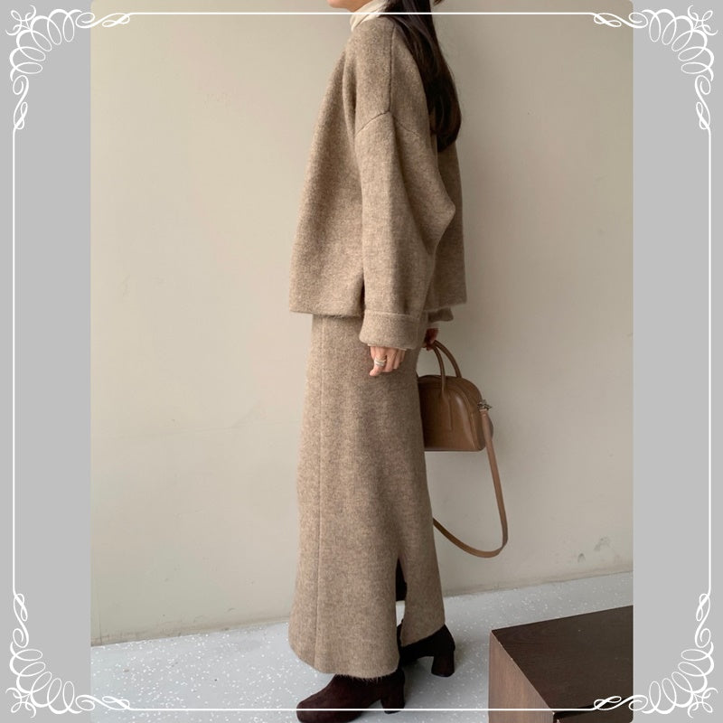 慵懒风 开衫毛衣+半裙 套装