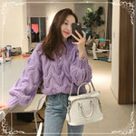 灯笼袖 麻花 套头