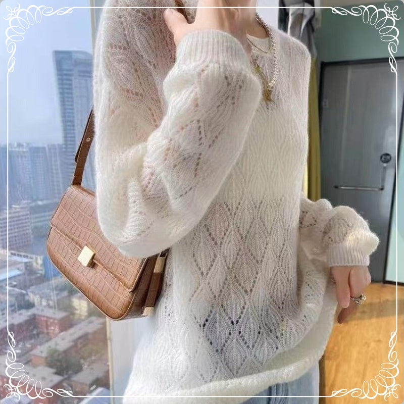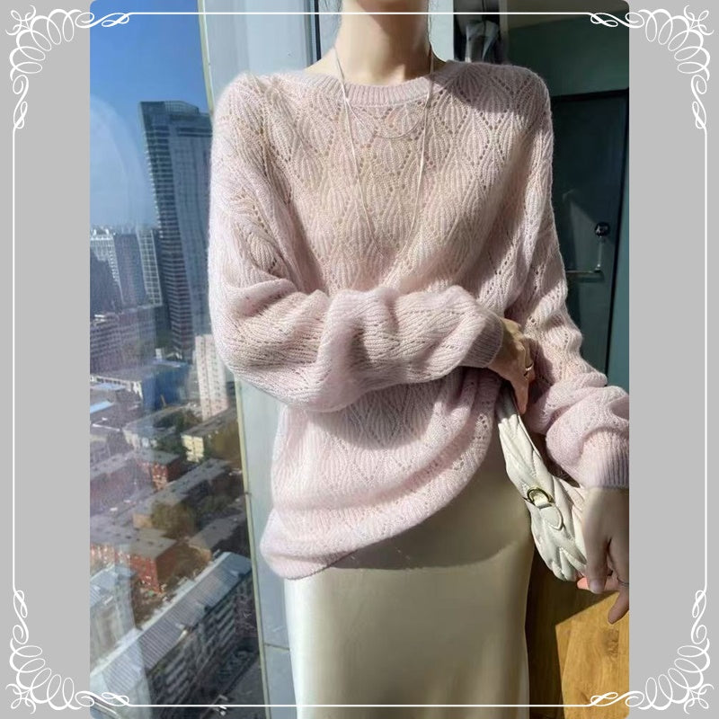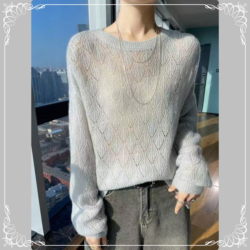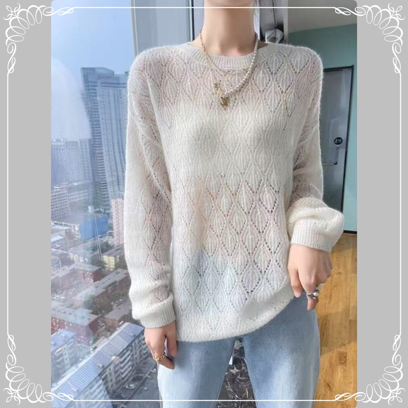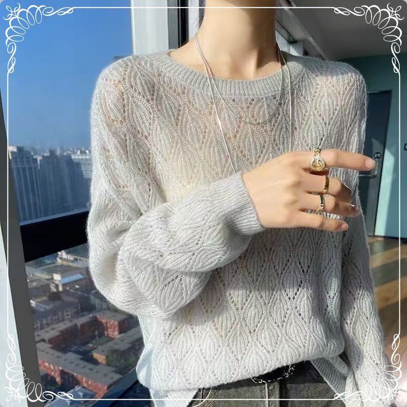 镂空 薄款 圆领 针织 上衣