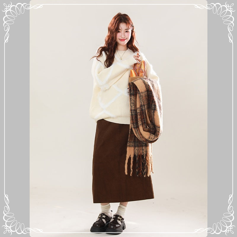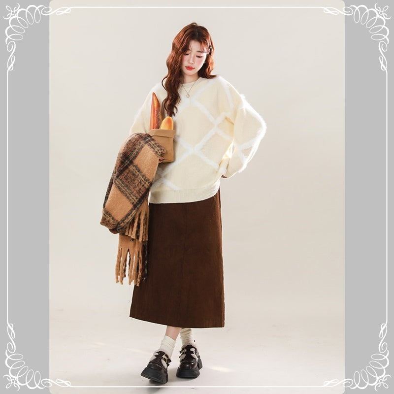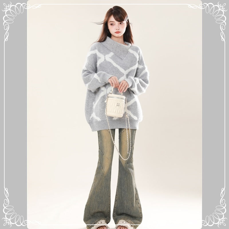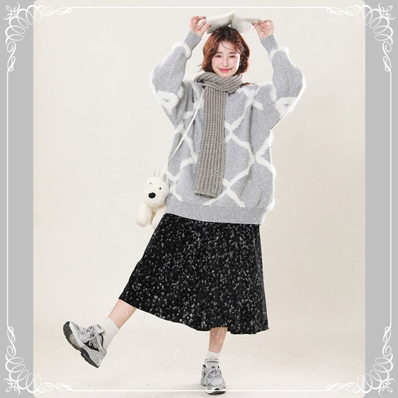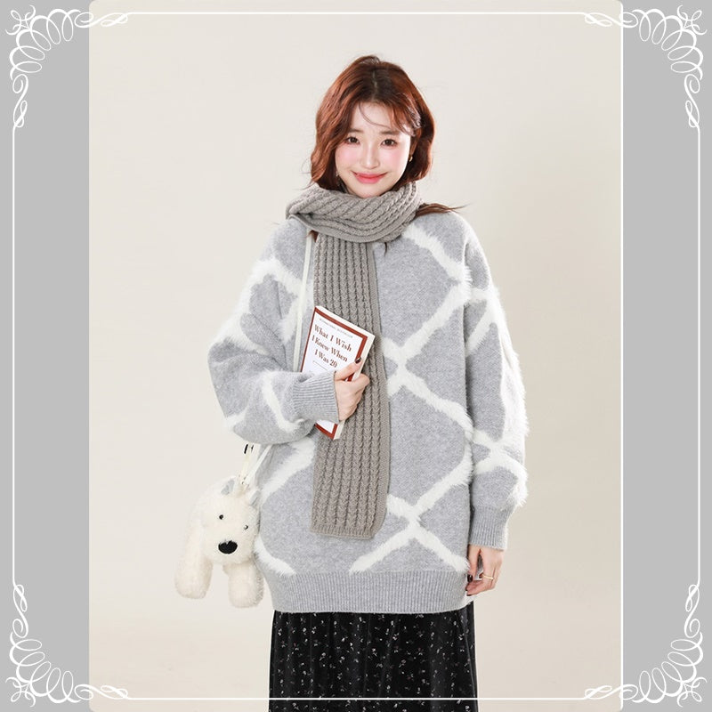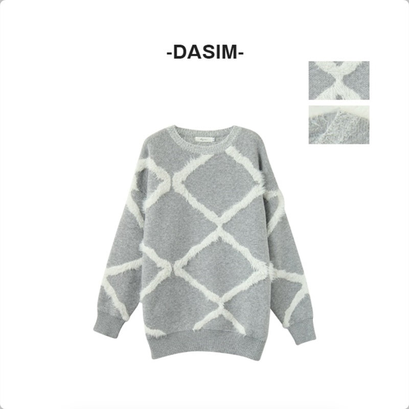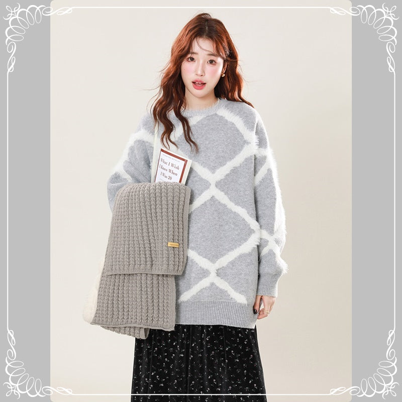 菱形格 宽松 慵懒风 套头