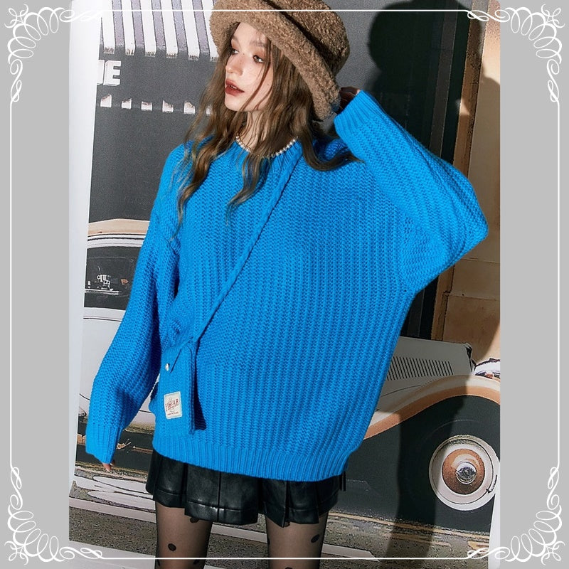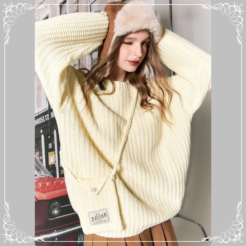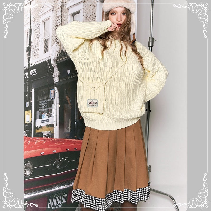 圆领 套头 开衫 配包包
