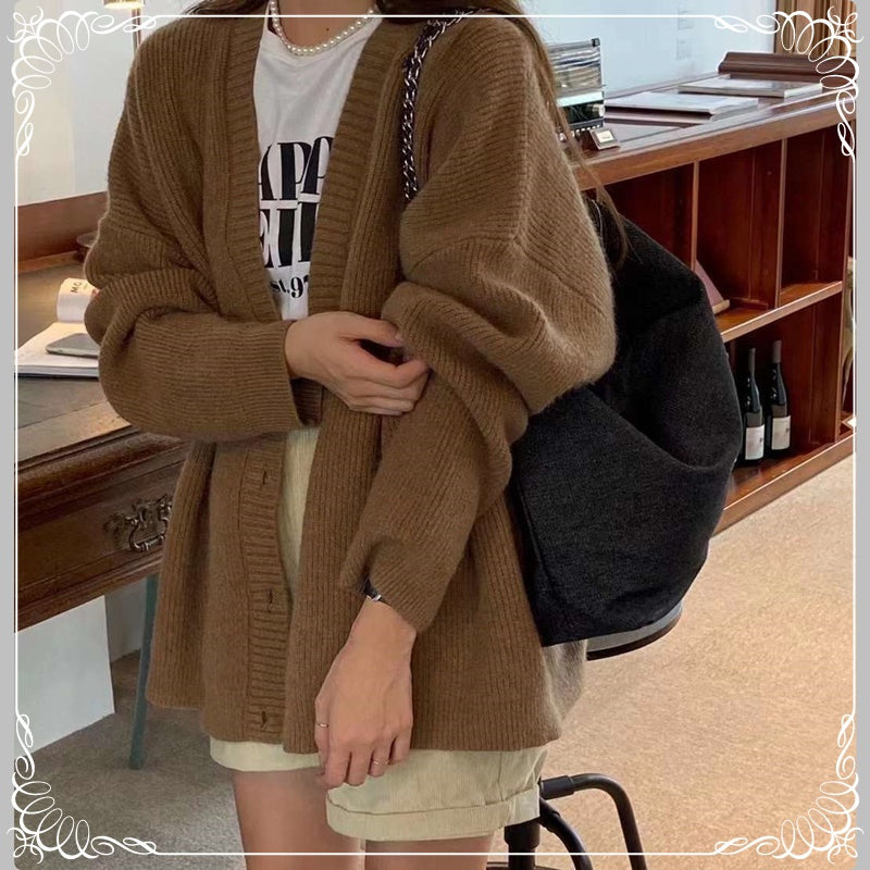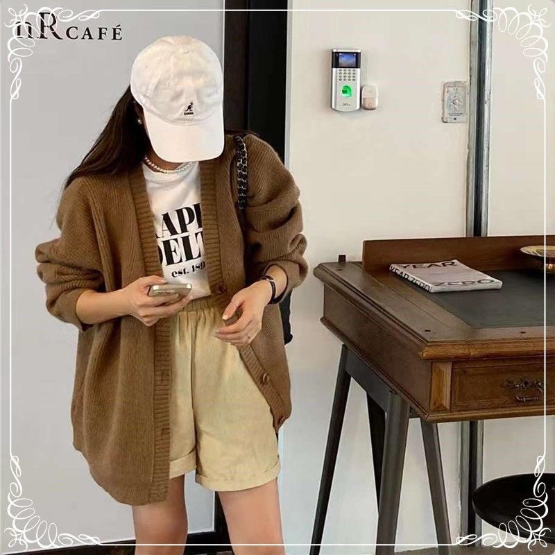 坑条 V领 开衫